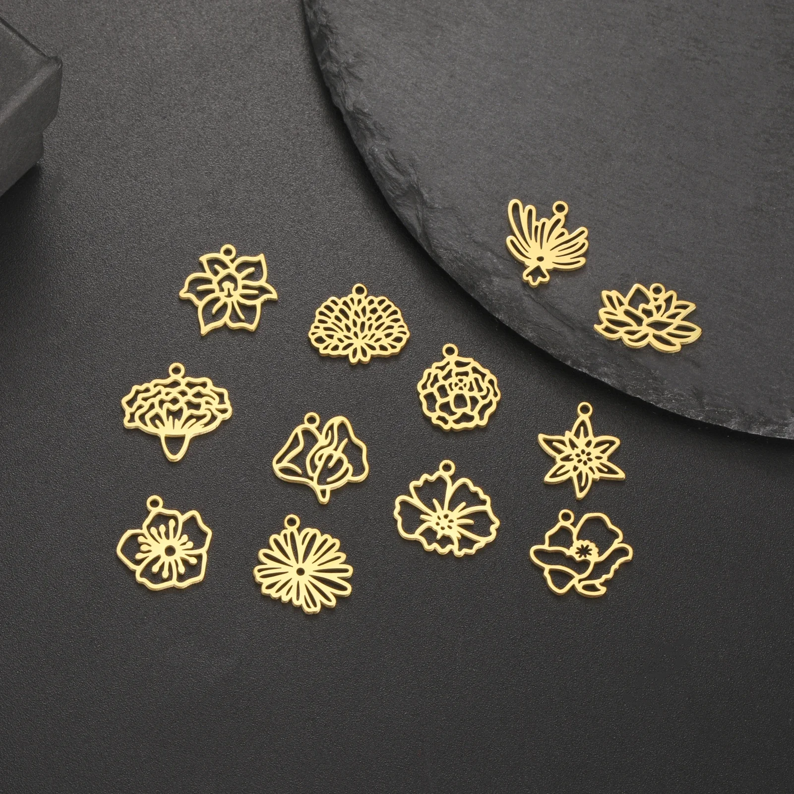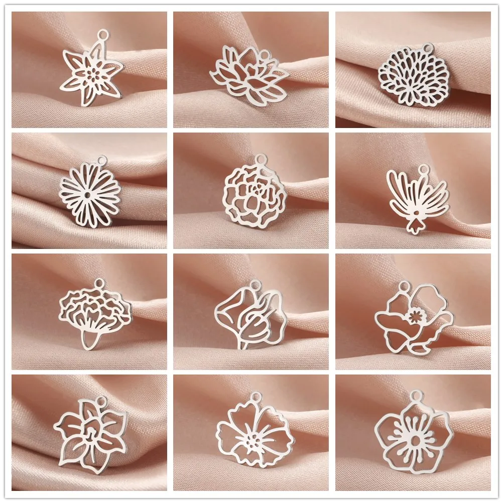 Pourquoi choisir Charme de fleurs en acier inoxydable pour pendentif bricolage, bijoux exécutifs, mois de naissance, Aster, verre, oeillet, Annie, coquelicot, vente en gros, 12 pièces par lot