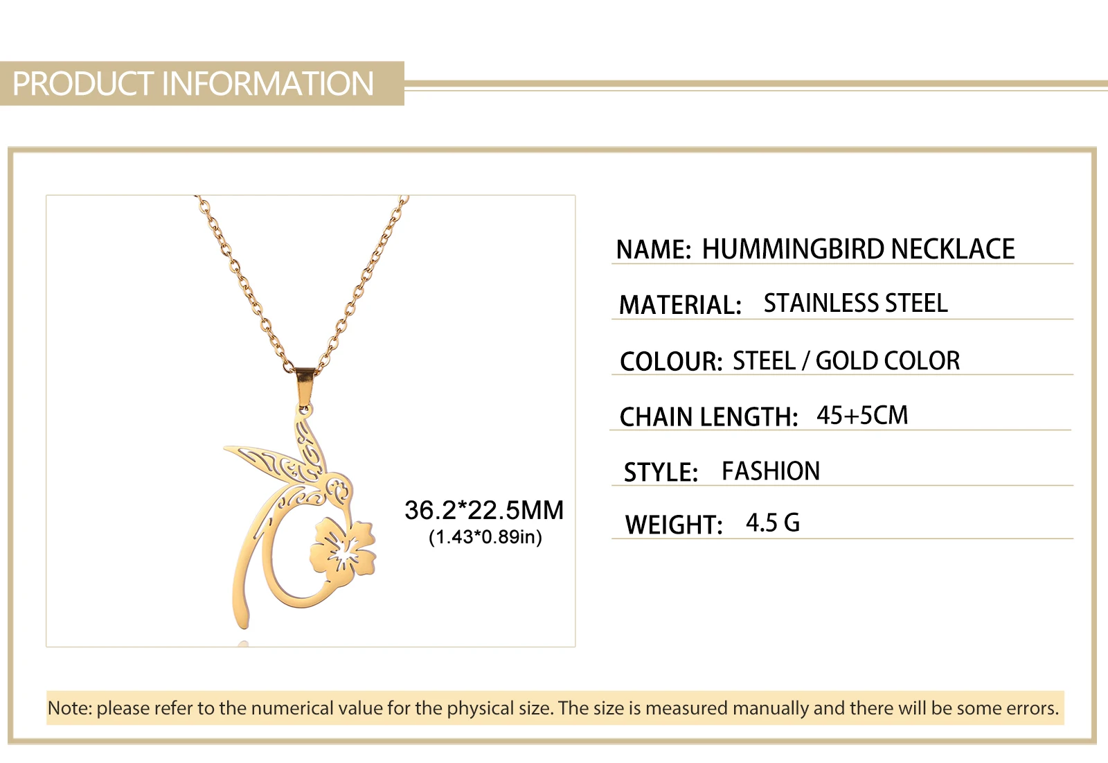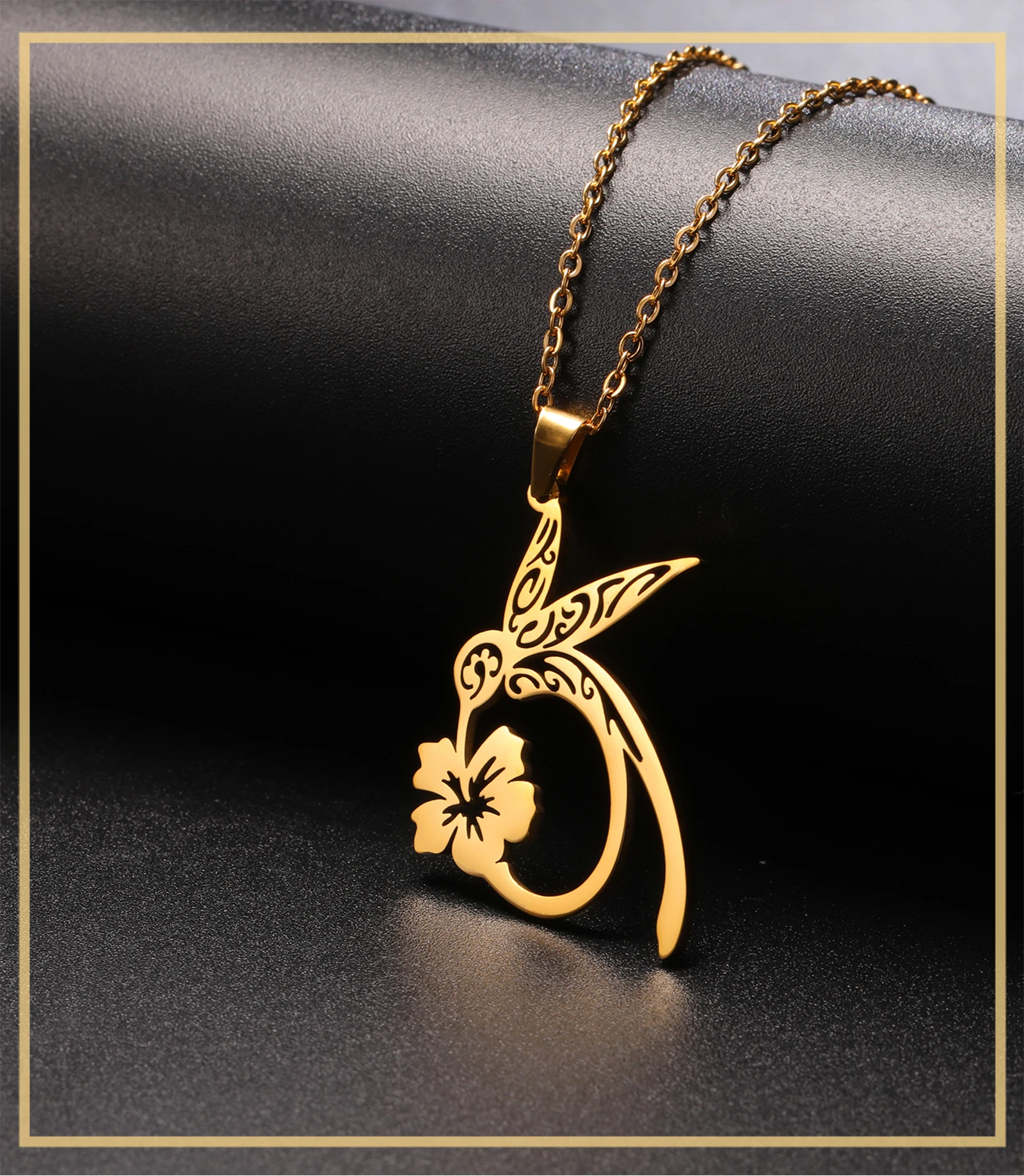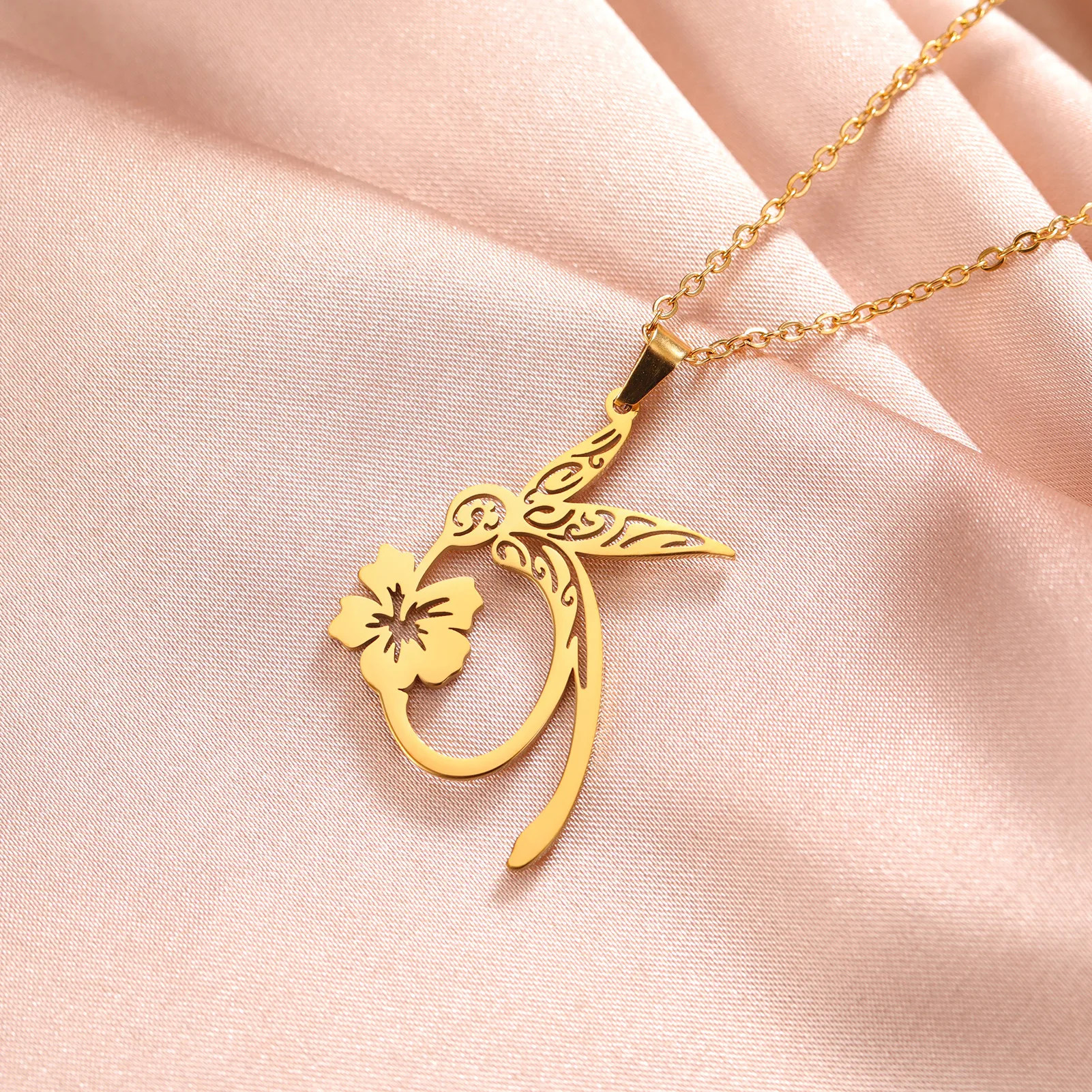 Pourquoi choisir Colliers avec pendentif fleur de colibri pour femmes et filles, chaîne en acier inoxydable de couleur or, ras du cou, bijoux animaux, cadeau d'anniversaire