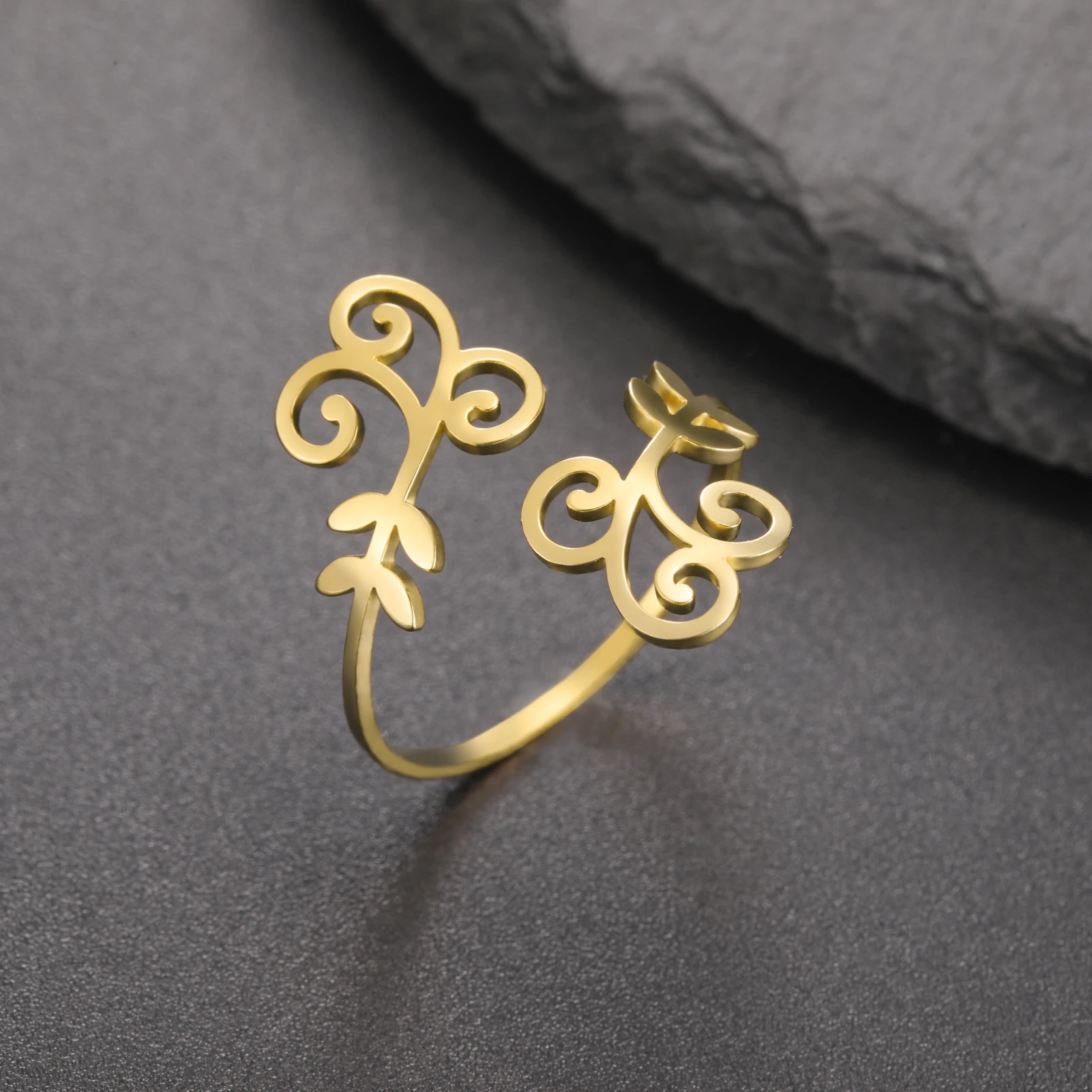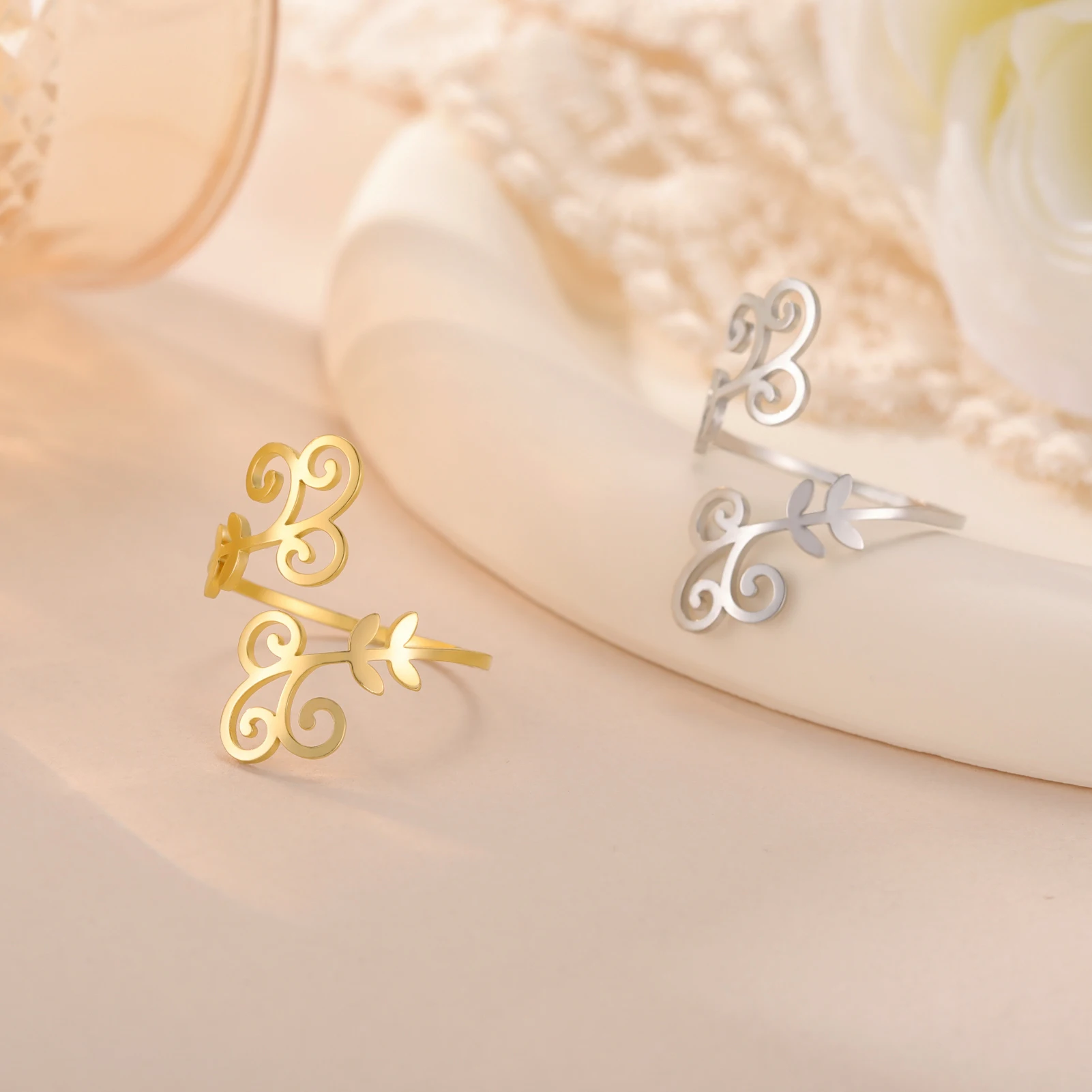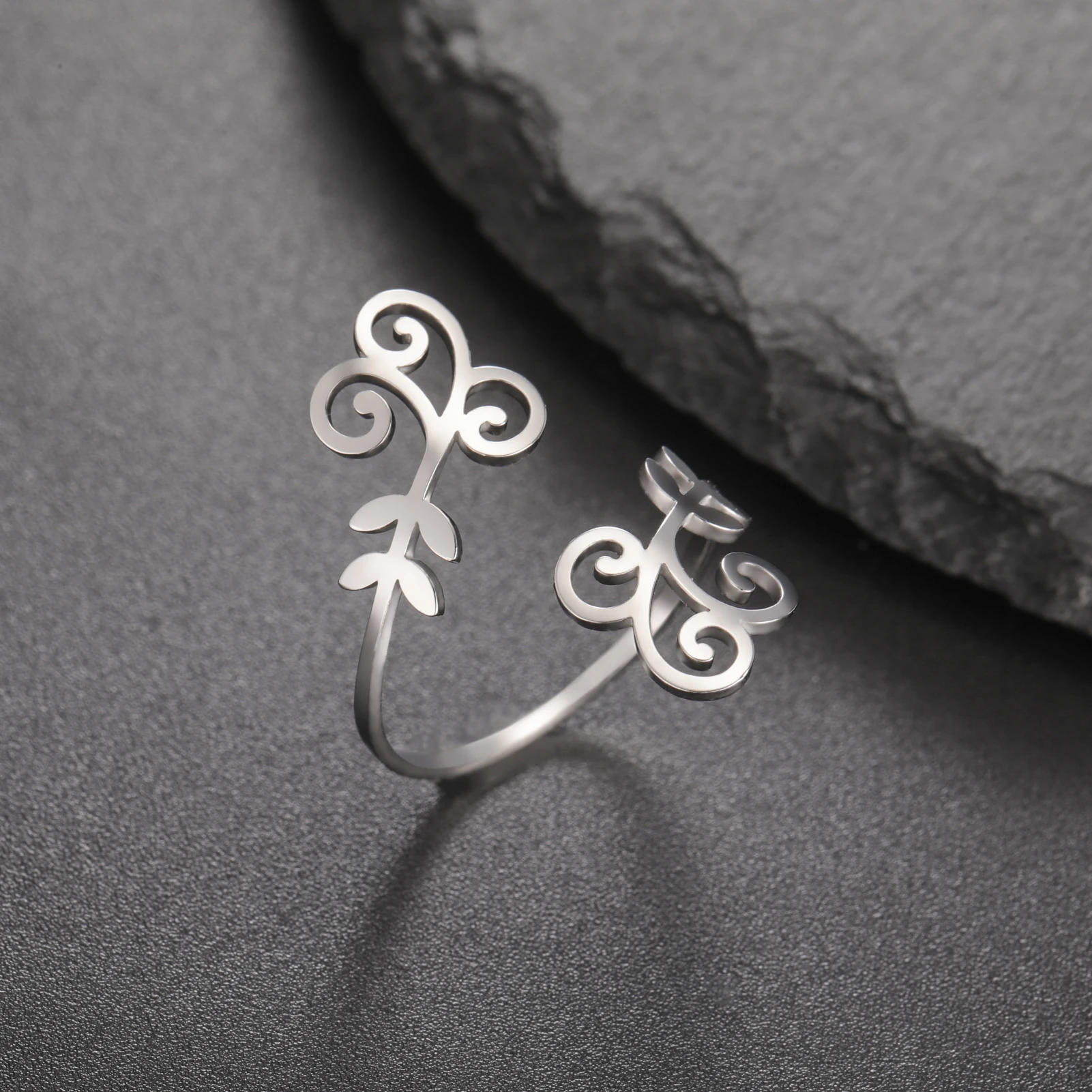 Pourquoi choisir Filigrane Bague en acier inoxydable pour femme, bijou en forme de fleur, ajustable, style bohème, élégant, cadeau