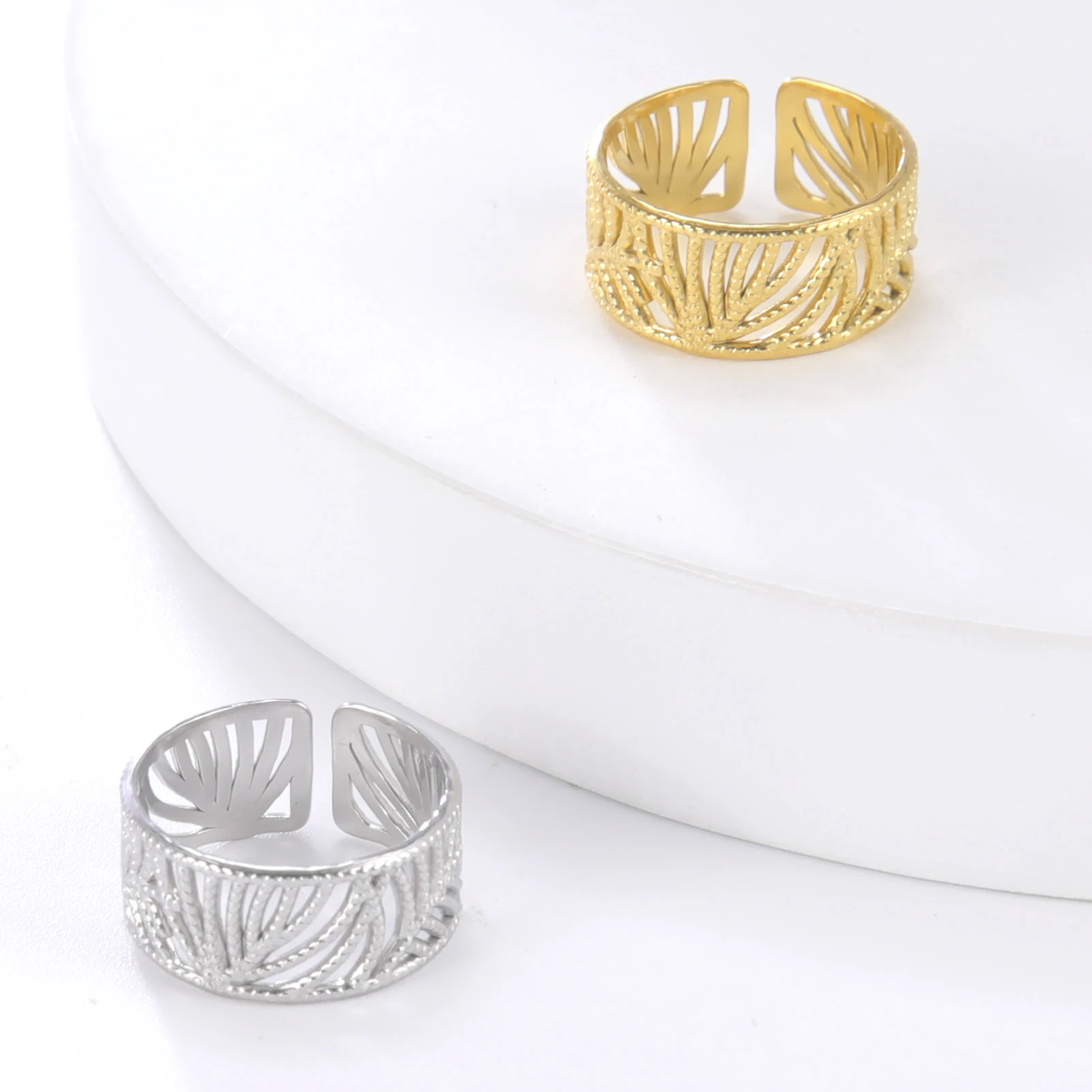 Pourquoi choisir -Bague Feuilles en Acier Inoxydable pour Femme, Anneaux Ouverts, Documents Dorés, Bijoux Bohème, Cadeau d'Anniversaire pour Amoureux et Mère, Mode 2025