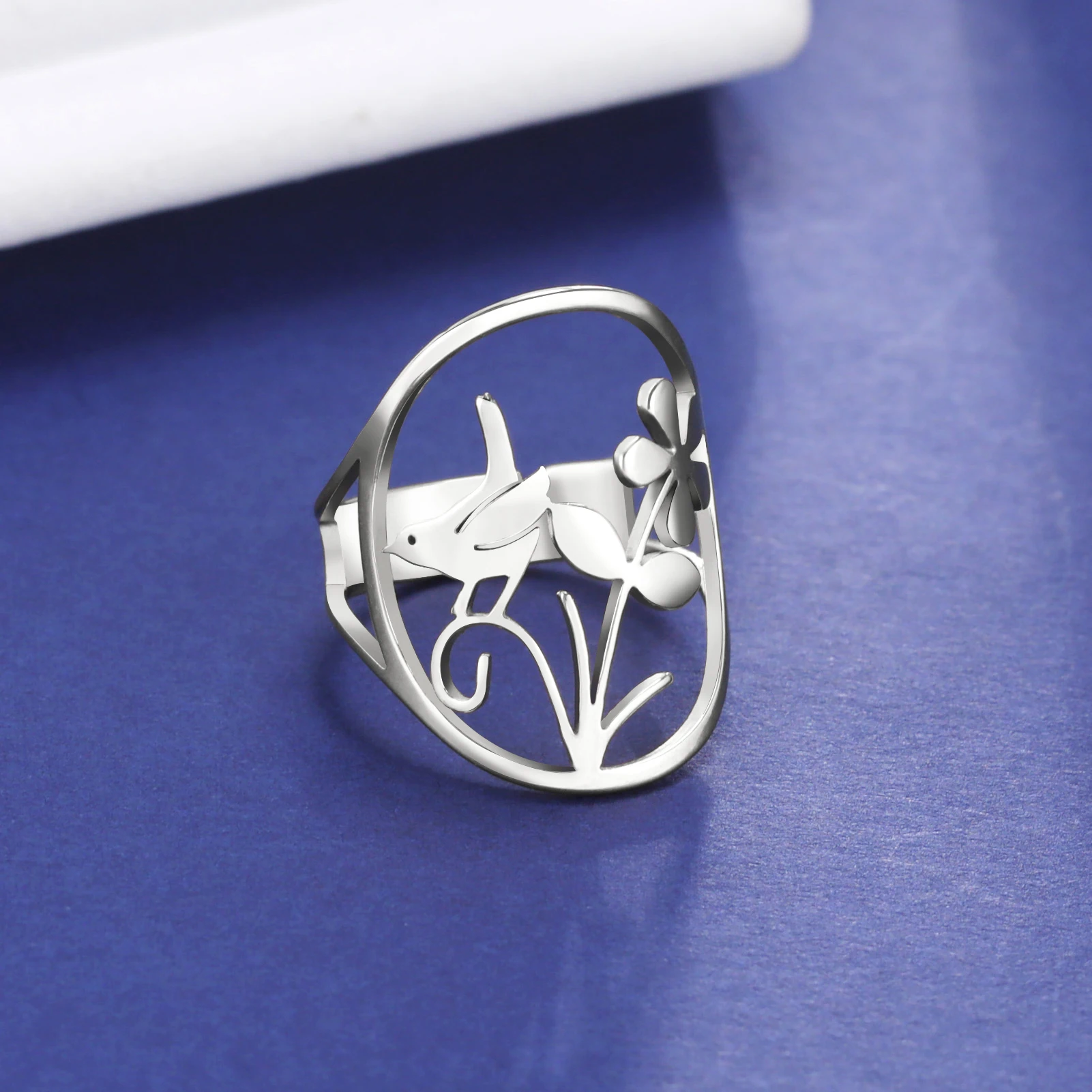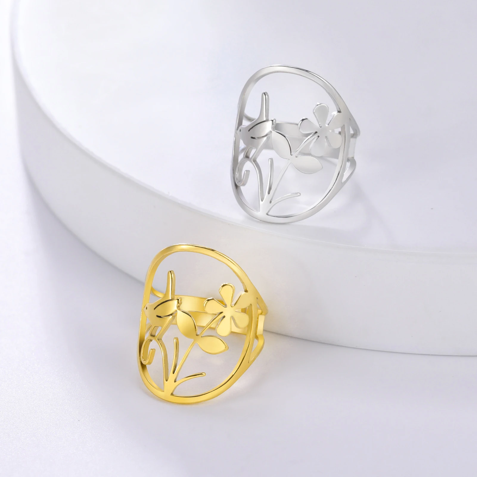 Pourquoi choisir -Bague Oiseau Fleur pour Femme, Acier Inoxydable Or, Bagues Réglables, Bijoux Bohème, Cadeau Leon, Nouveau, 2025