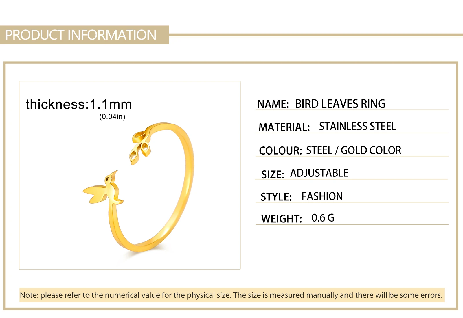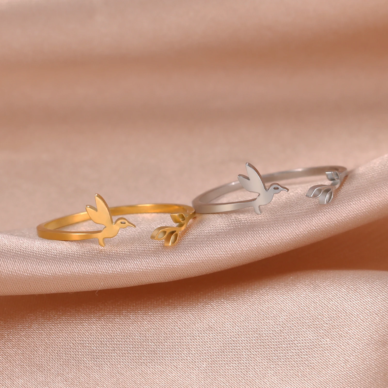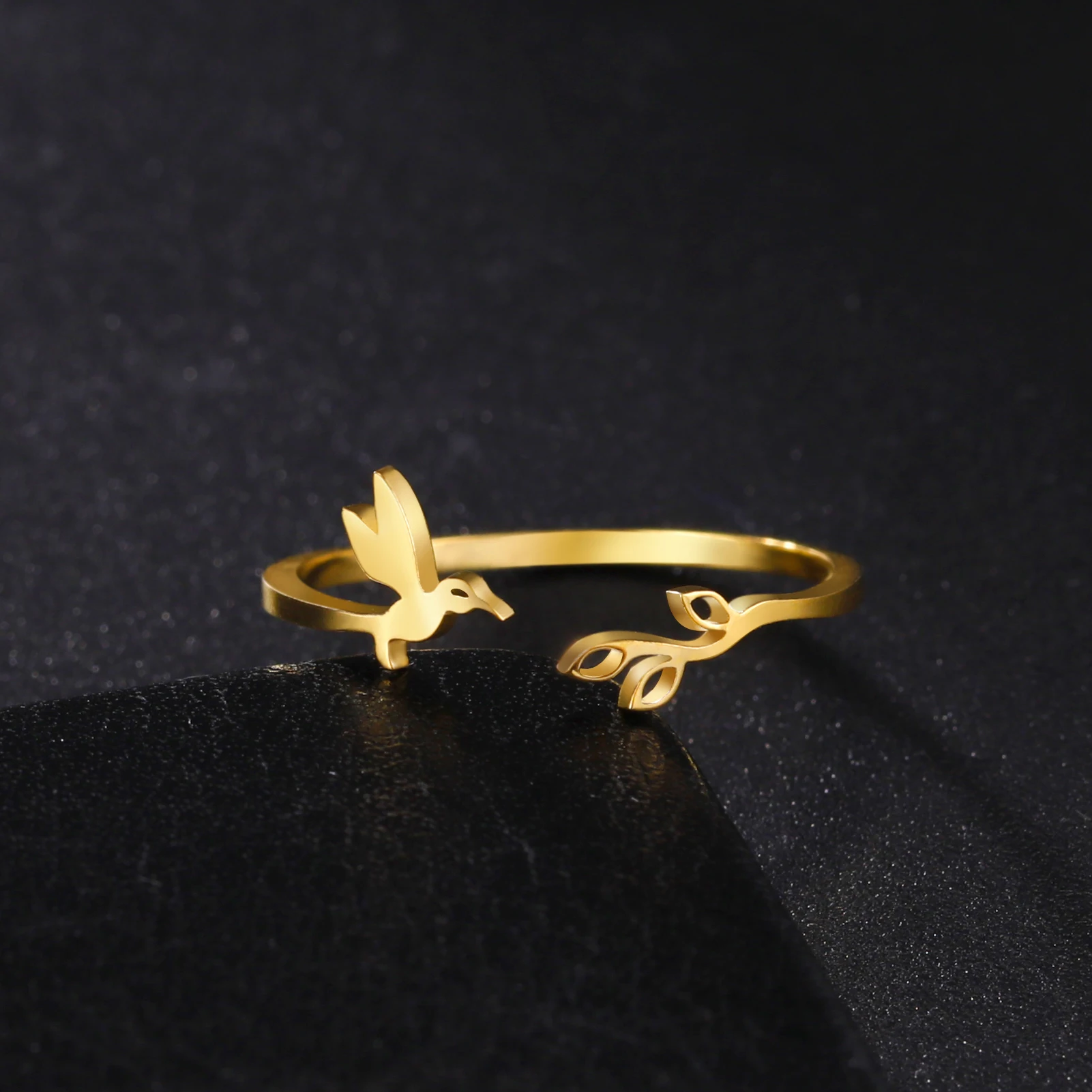 Pourquoi choisir -Bague Ouverte Arbre Feuilles et Oiseau pour Femme, Bagues Réglables en Acier Inoxydable, Bijoux Fantaisie, Cadeau d'Anniversaire, Nouveau, 2025