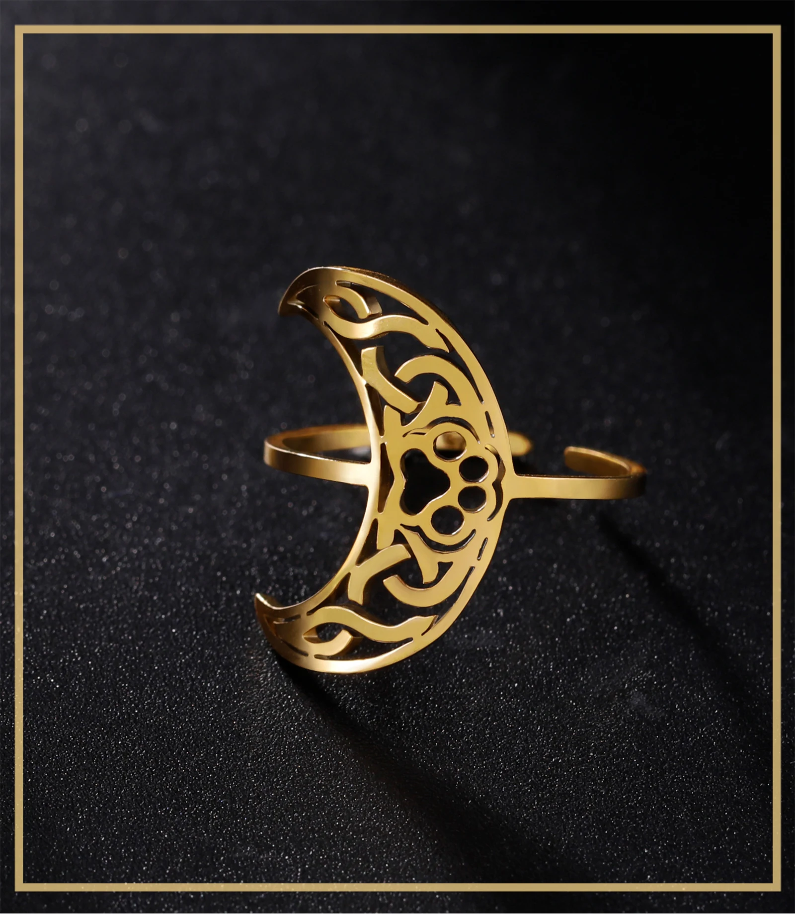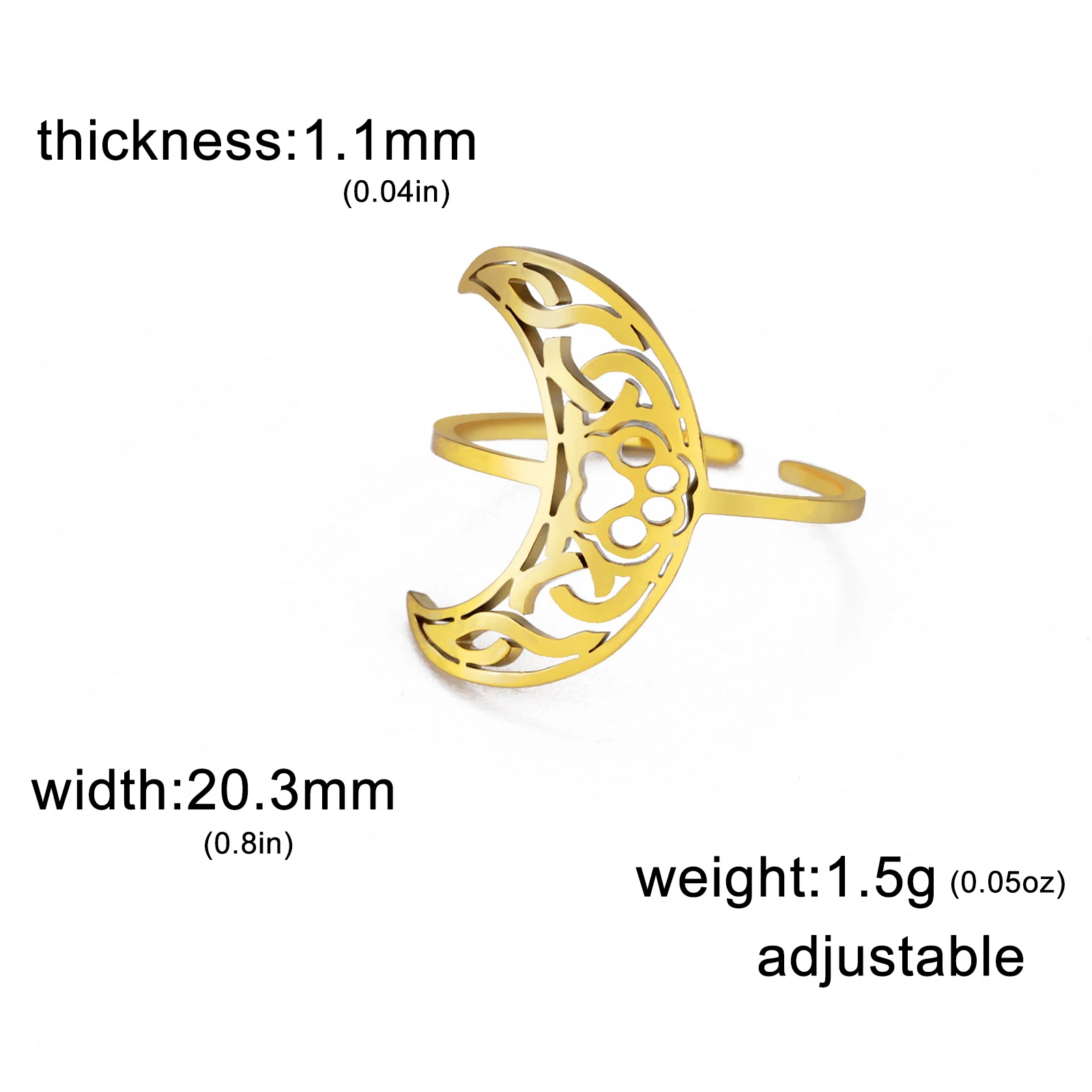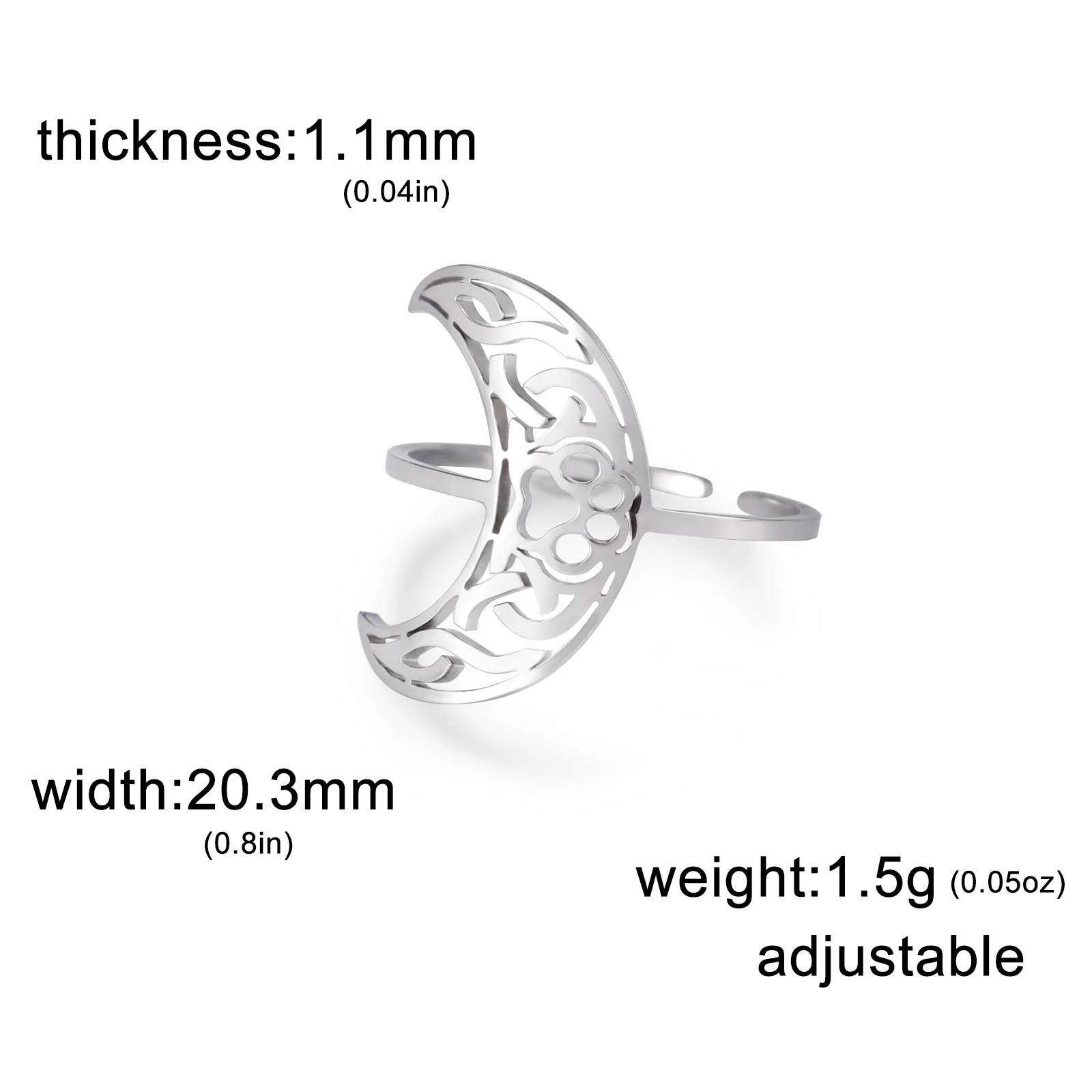 Pourquoi choisir -Bague Ouverte Imprimée Patte de Lune pour Femme, Acier Inoxydable Réglable, Croissant de Lune, Noeud Celtique, Vintage, Bijoux Cadeau, Vente en Gros