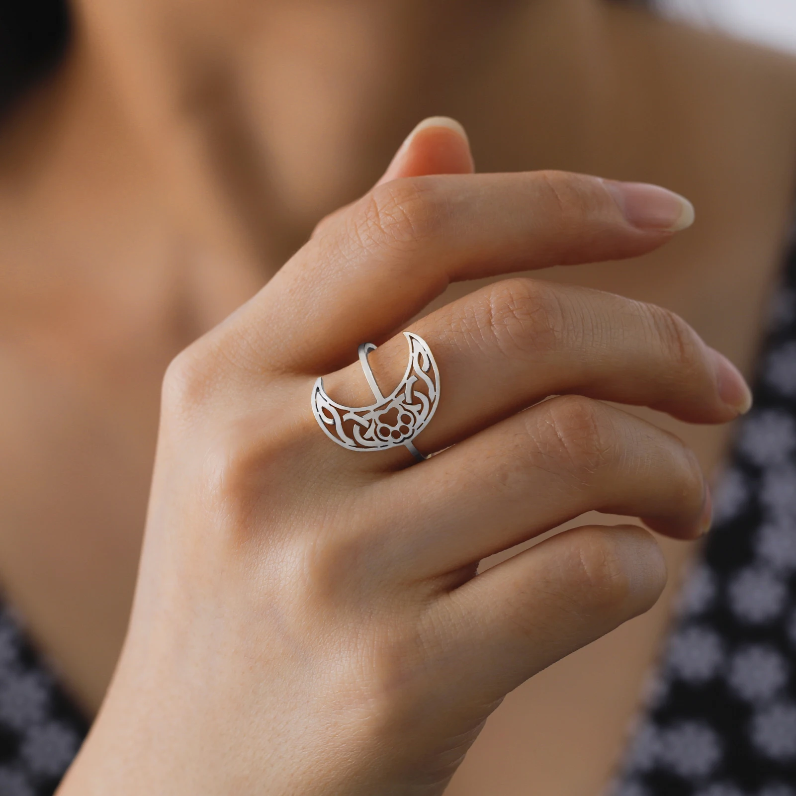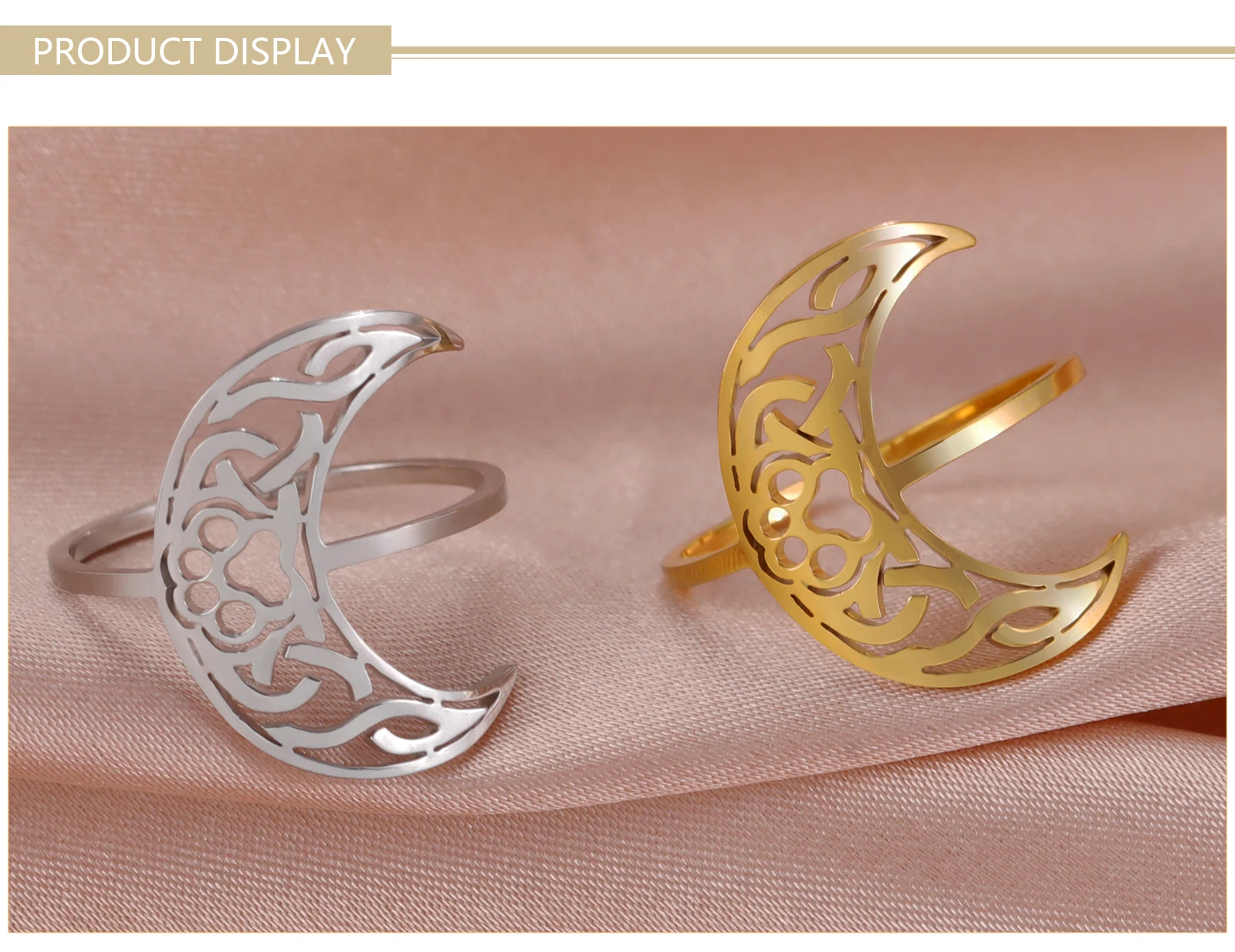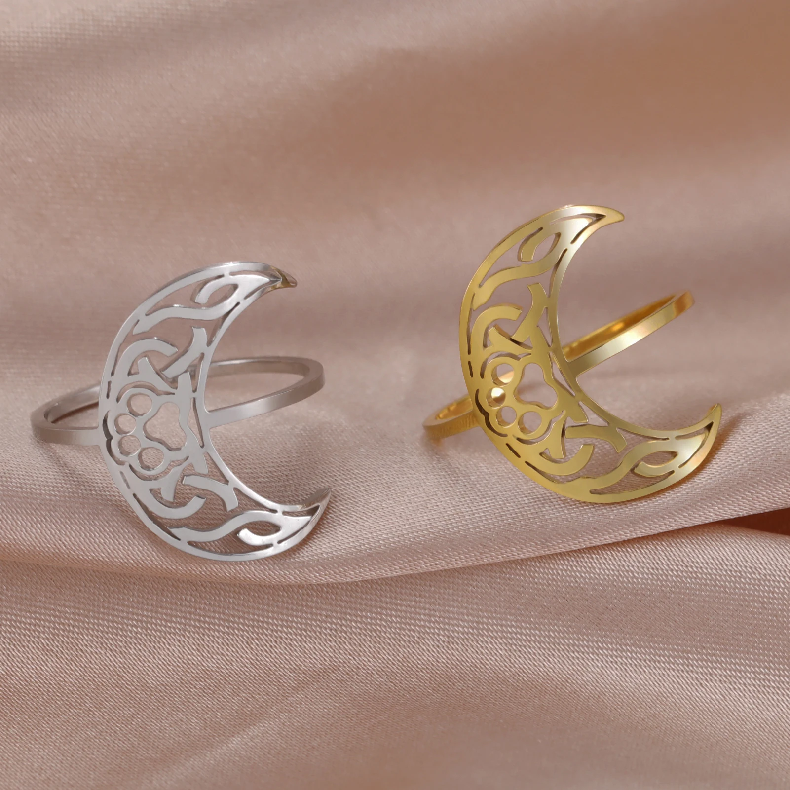 Pourquoi choisir -Bague Ouverte Imprimée Patte de Lune pour Femme, Acier Inoxydable Réglable, Croissant de Lune, Noeud Celtique, Vintage, Bijoux Cadeau, Vente en Gros