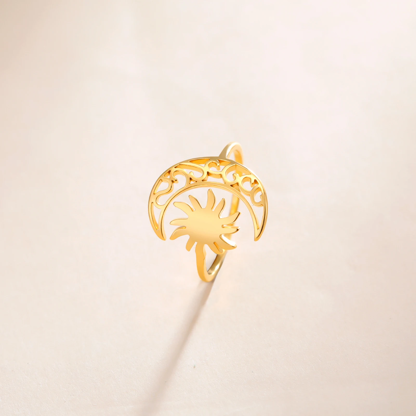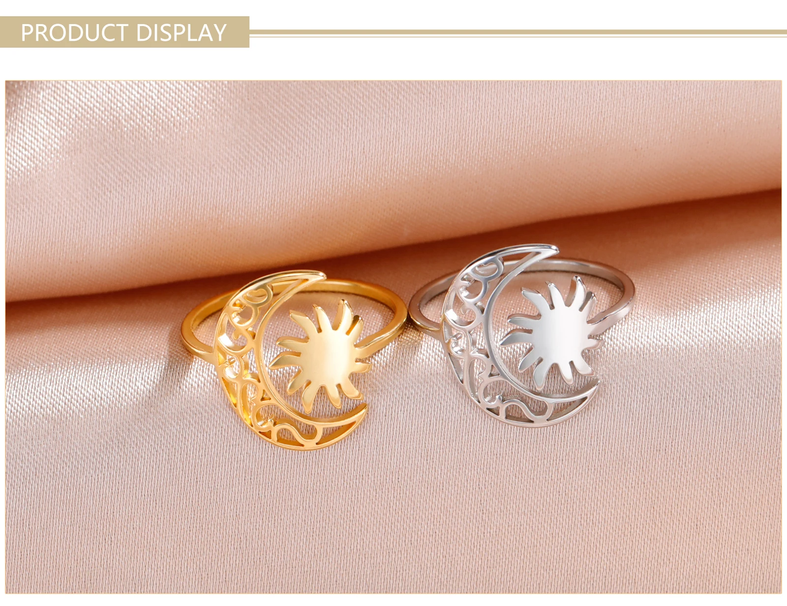 Pourquoi choisir – bague soleil en forme de croissant de lune pour femmes, en acier inoxydable, ouverte, tendance, bohème, bijoux, cadeau d'anniversaire, vente en gros