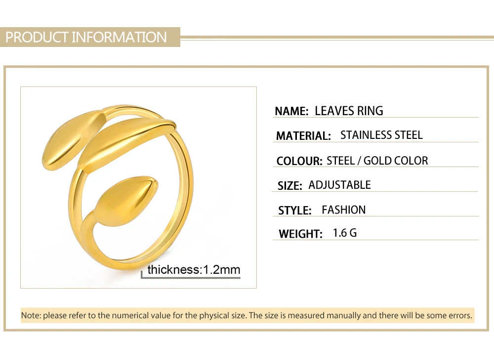 Pourquoi choisir -Bagues Feuilles d'Arbre Bohème pour Femme, Acier Inoxydable, Or, Bague Ajustable, Bijoux Mode, Cadeau de Mariage, 2025