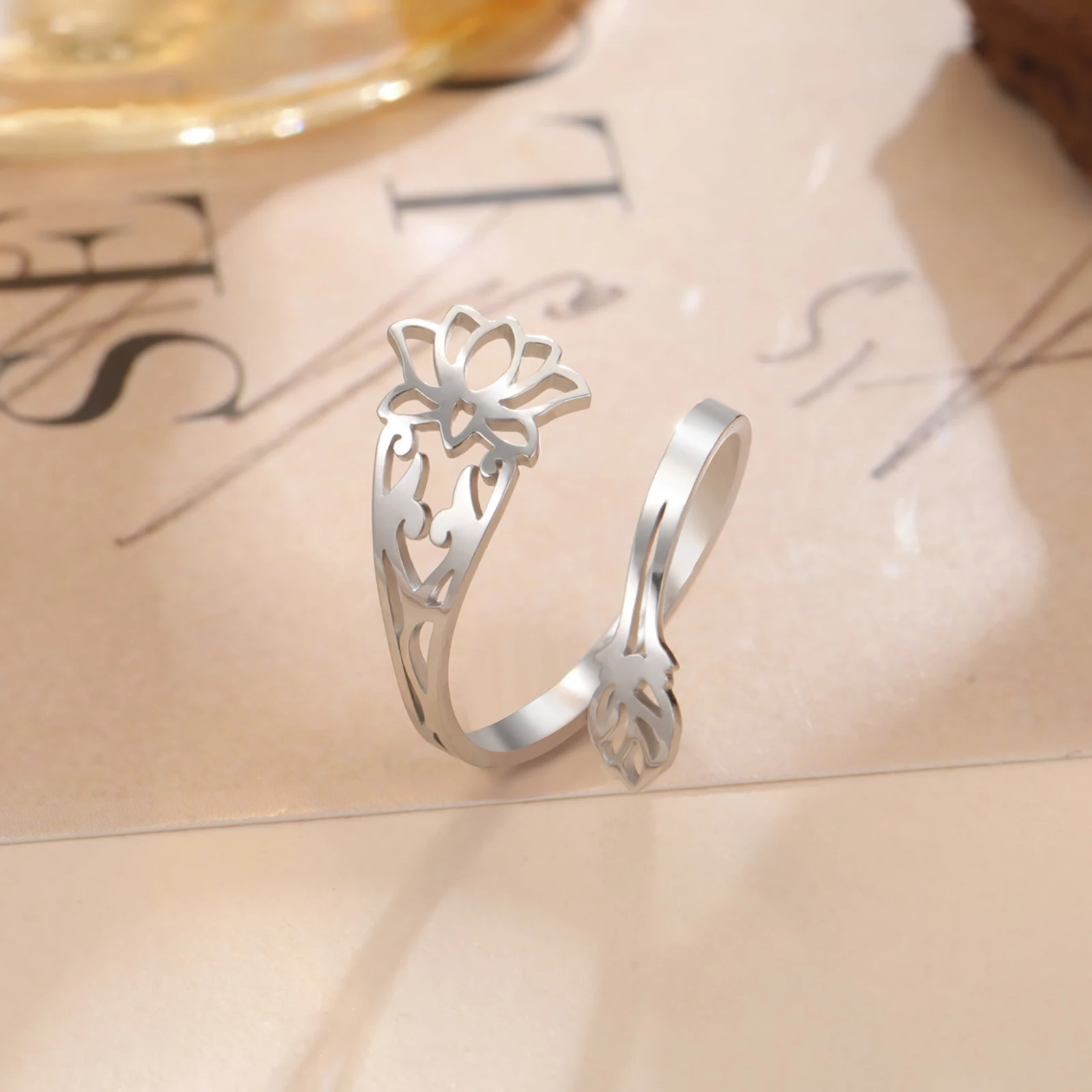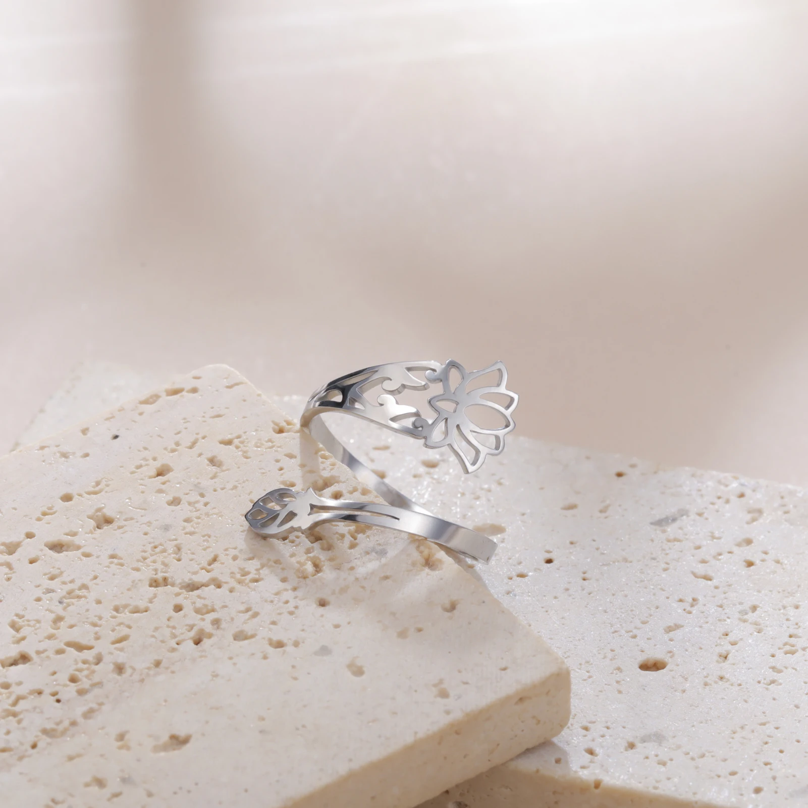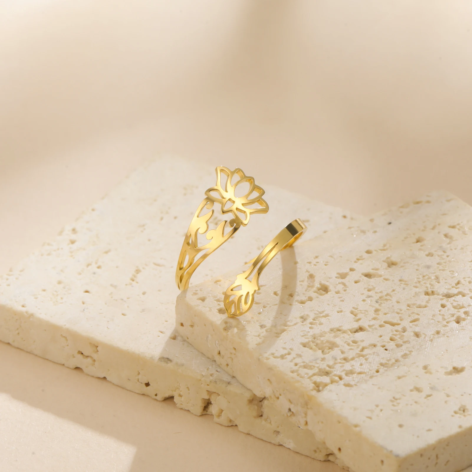 Pourquoi choisir – bagues fleur de Lotus pour femmes, en acier inoxydable, couleur or, anneau ouvert réglable, bijoux tendance, cadeau d'anniversaire, nouveauté 2025