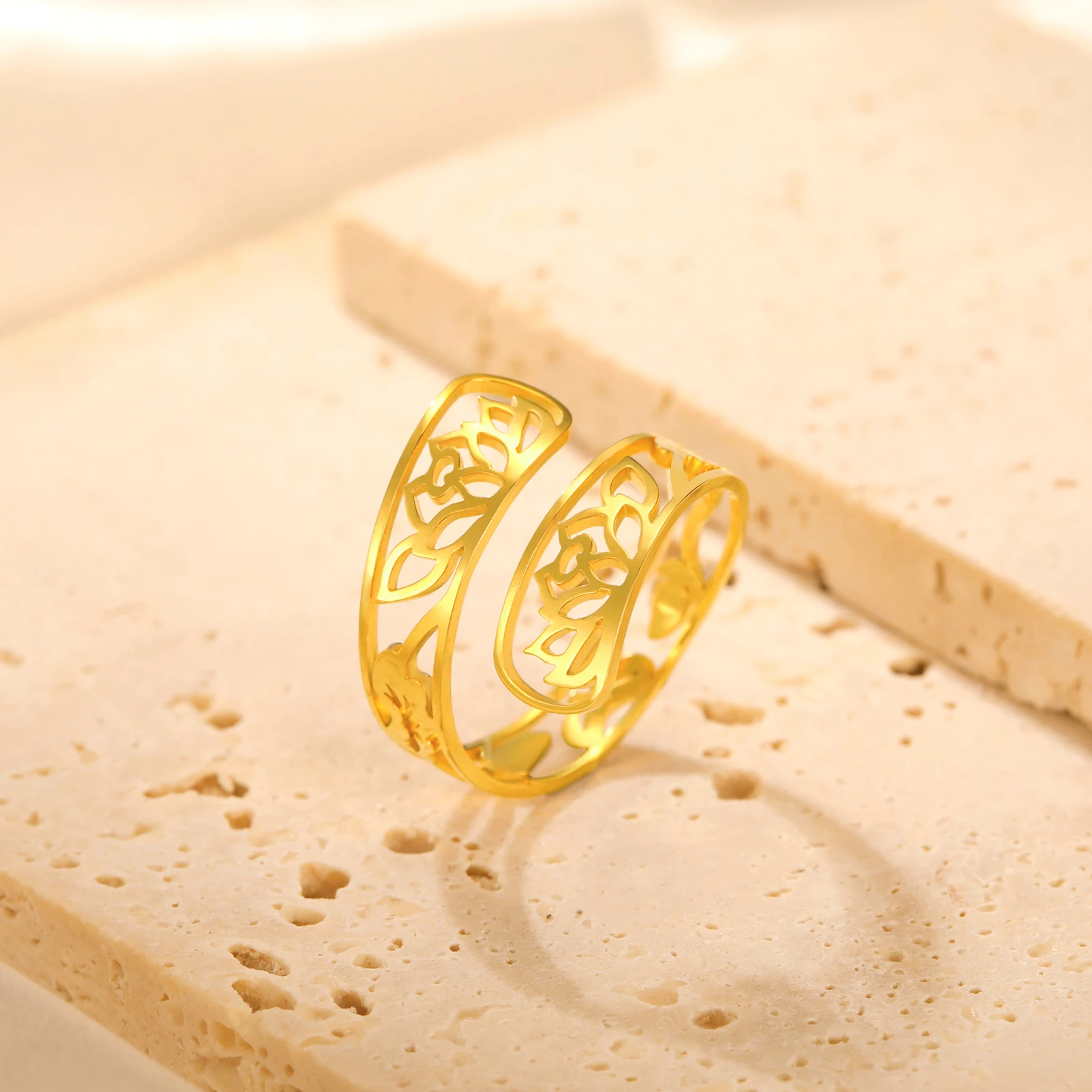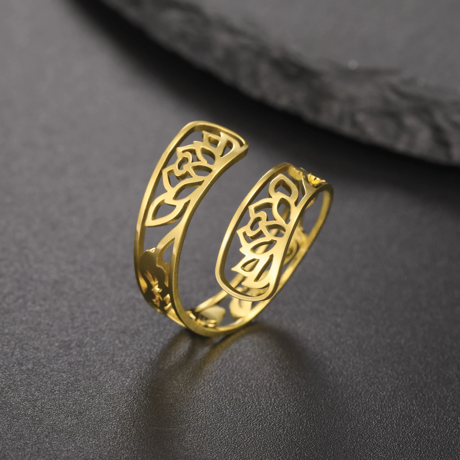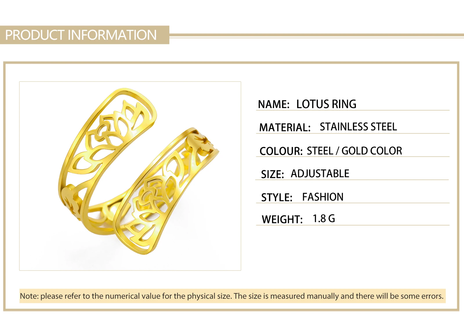 Pourquoi choisir – bagues réglables en forme de fleur de Lotus pour femmes, en acier inoxydable, couleur or, amulette, Yoga, bouddhisme, bijoux, cadeau d'anniversaire, vente en gros