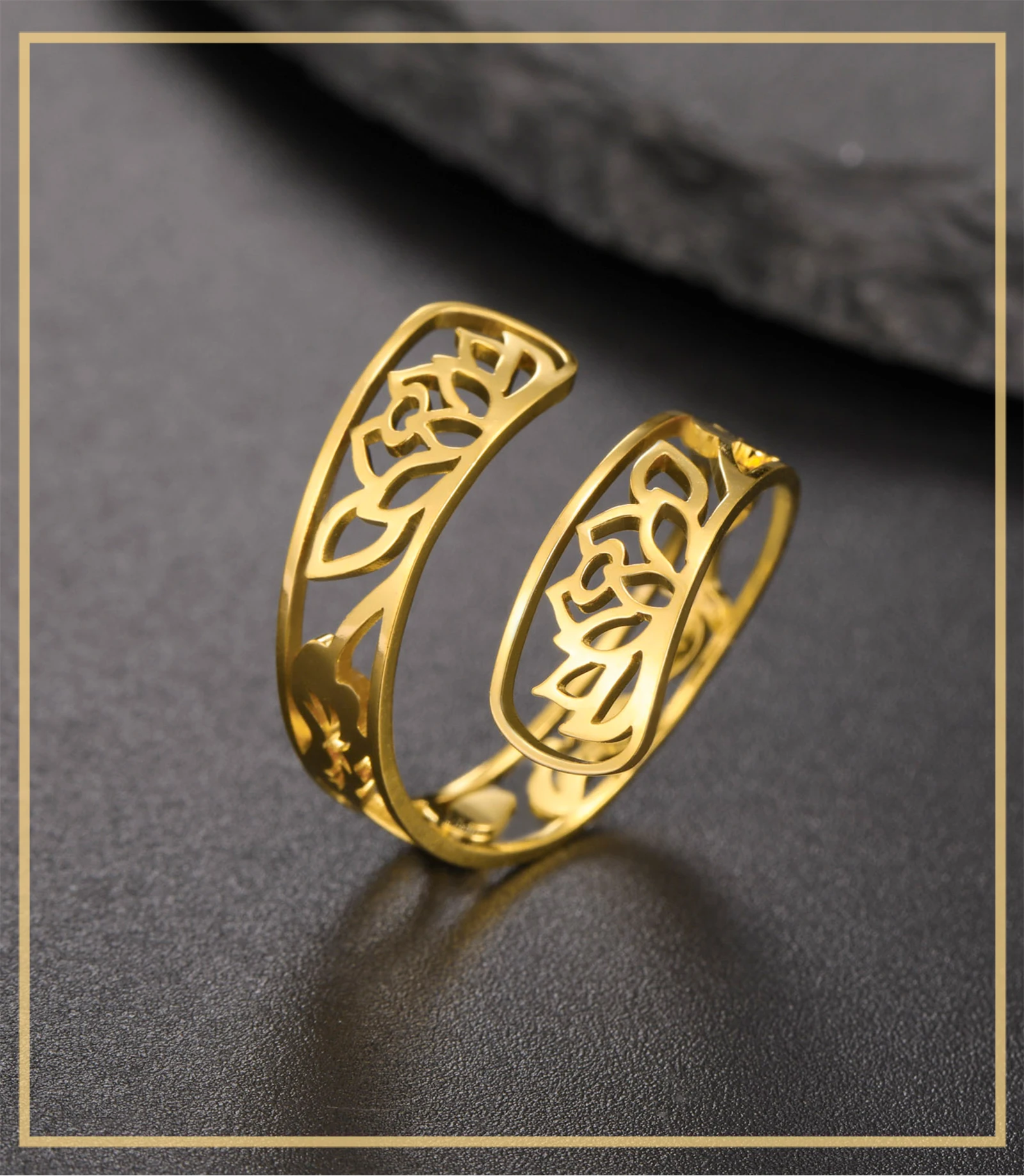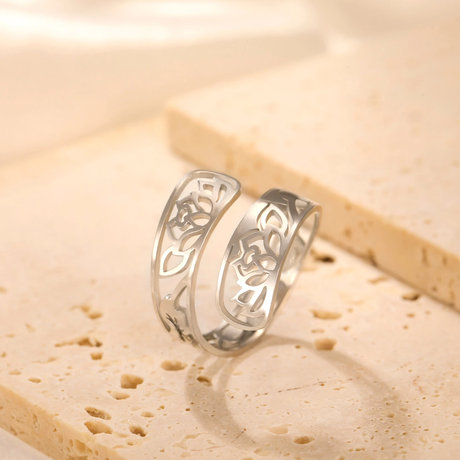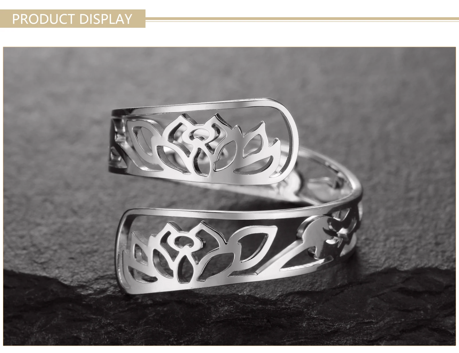 Pourquoi choisir – bagues réglables en forme de fleur de Lotus pour femmes, en acier inoxydable, couleur or, amulette, Yoga, bouddhisme, bijoux, cadeau d'anniversaire, vente en gros