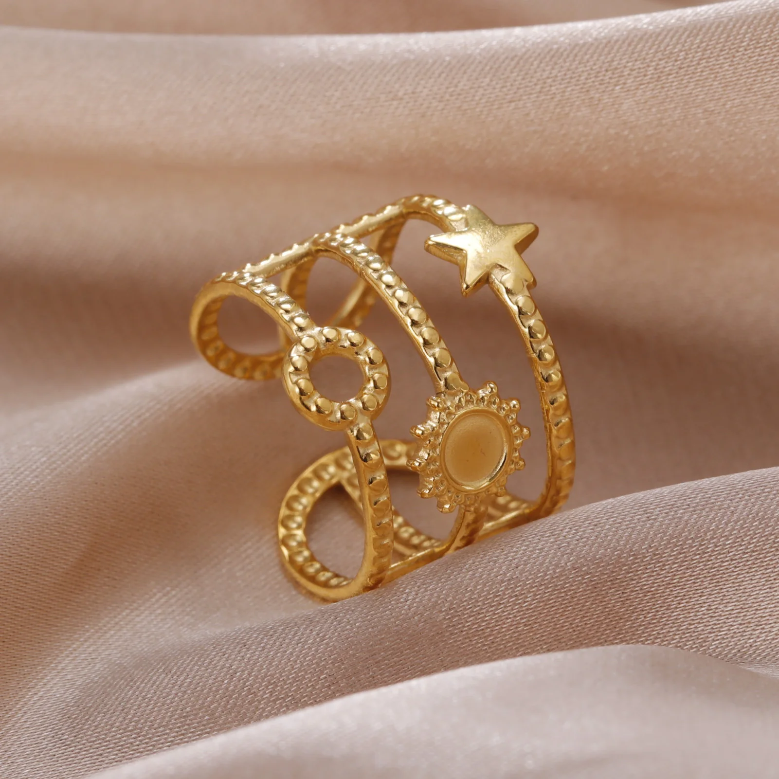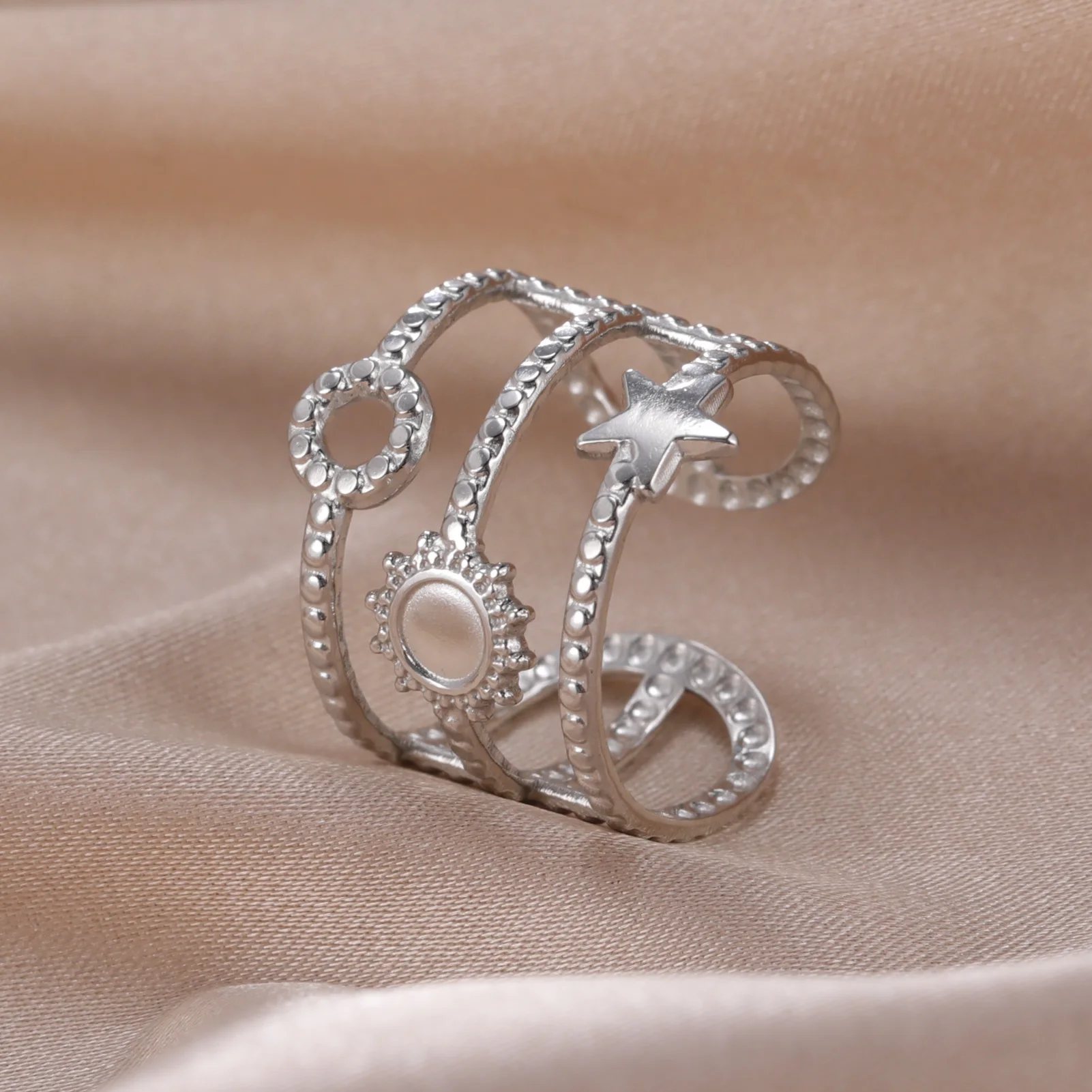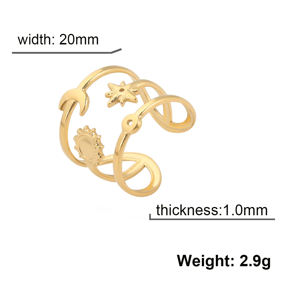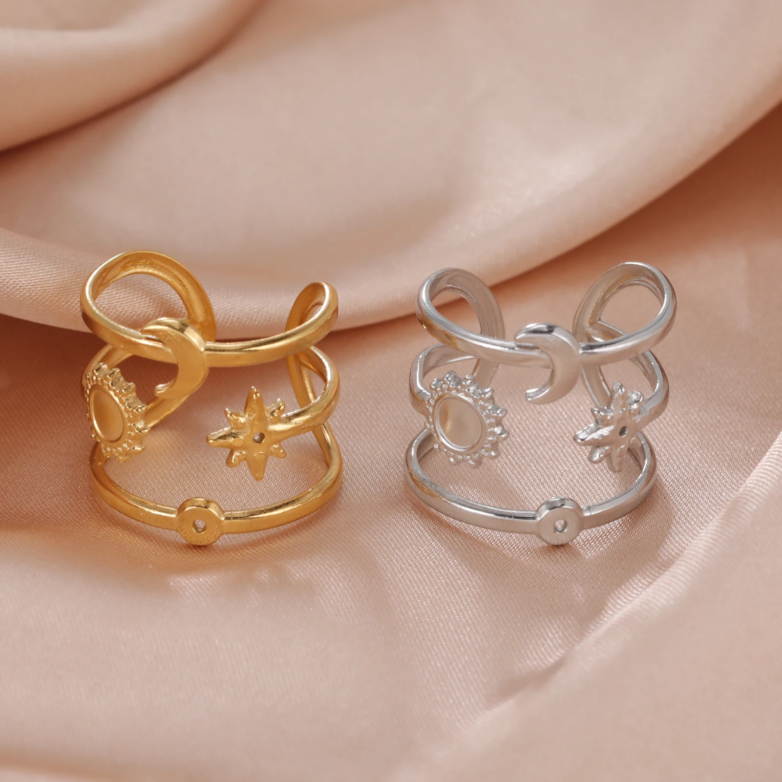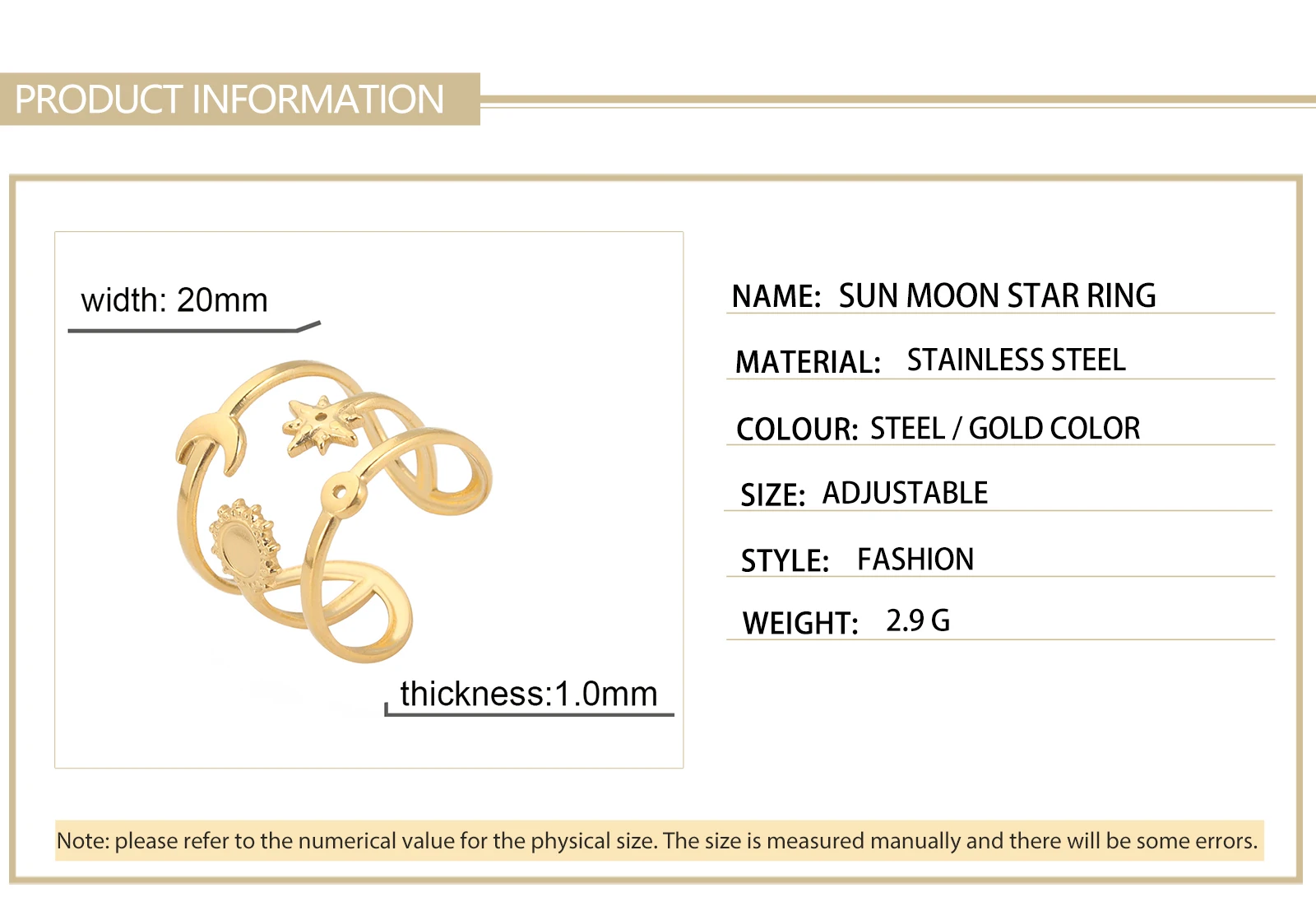 Pourquoi choisir Boho soleil lune étoile femmes bague en acier inoxydable couleur or trois couches anneaux ouverts bijoux à la mode cadeau de saint valentin nouveau