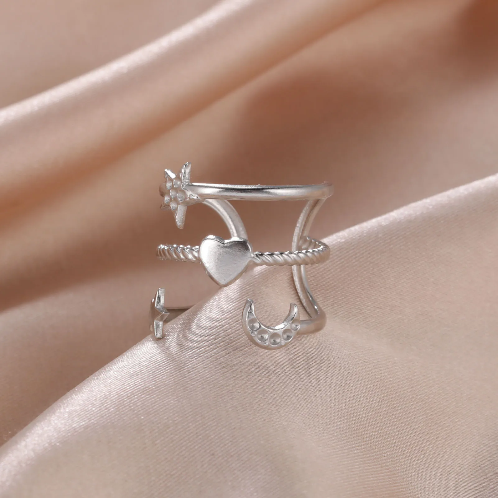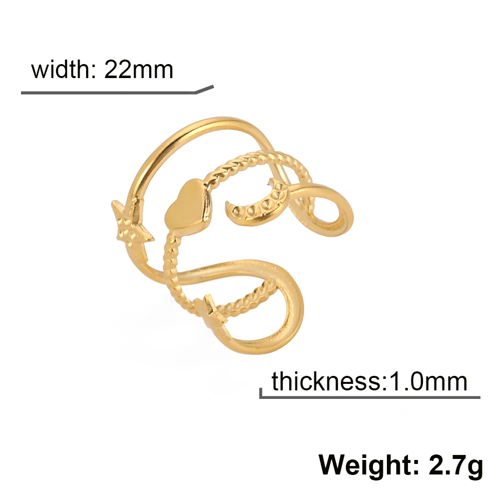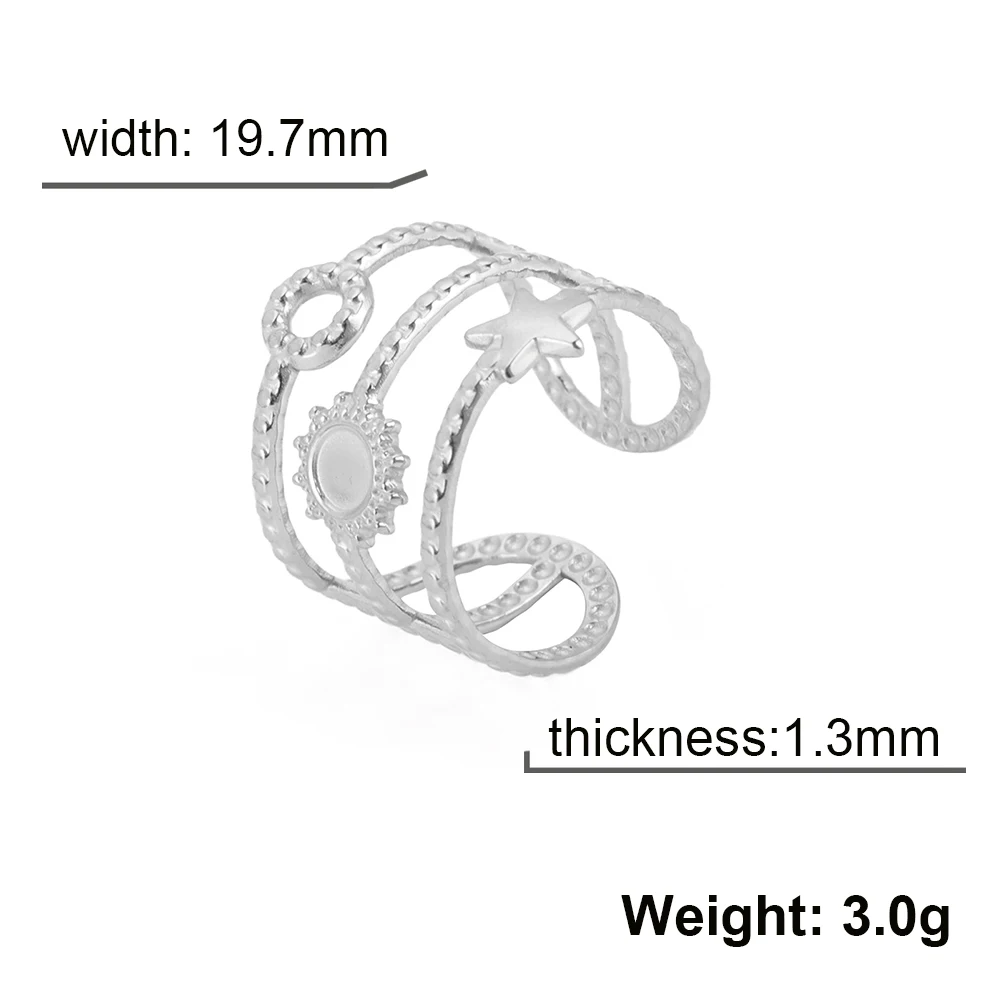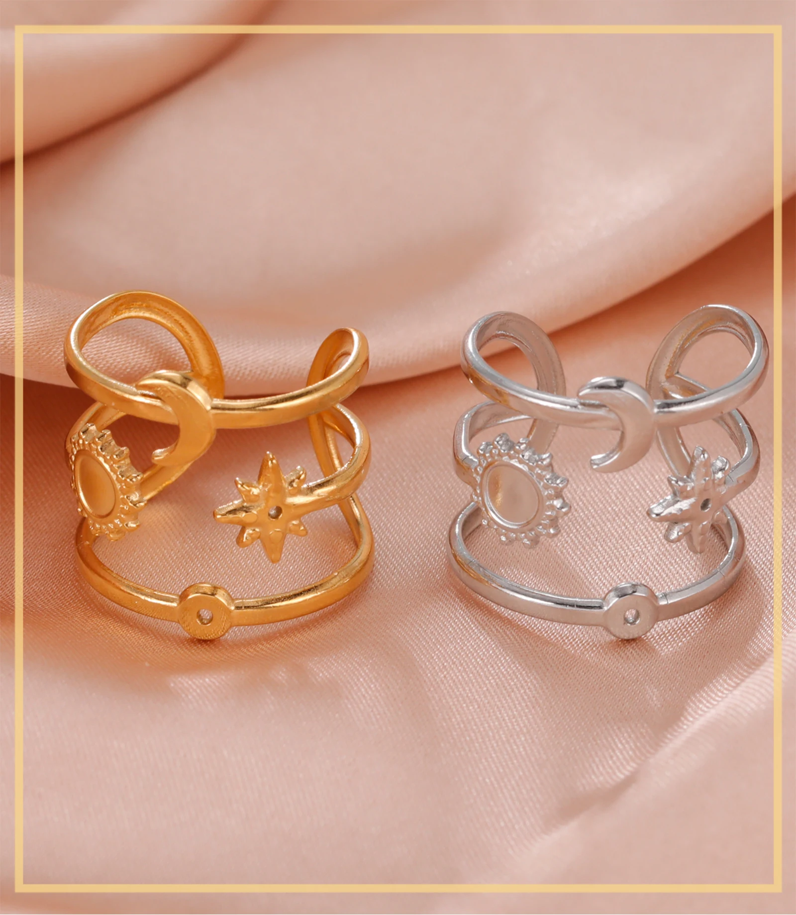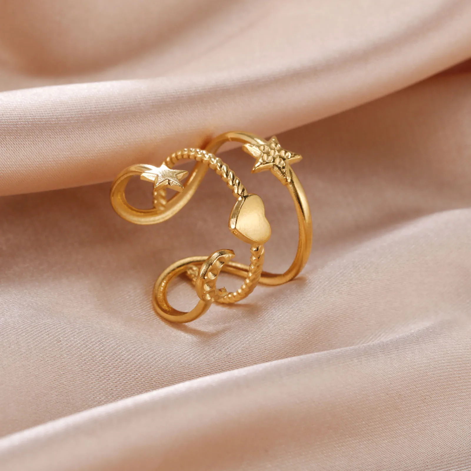 Pourquoi choisir Boho soleil lune étoile femmes bague en acier inoxydable couleur or trois couches anneaux ouverts bijoux à la mode cadeau de saint valentin nouveau