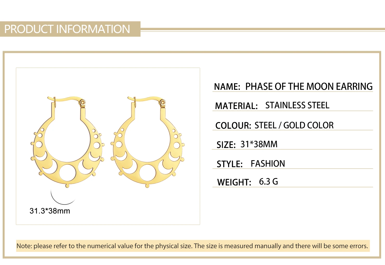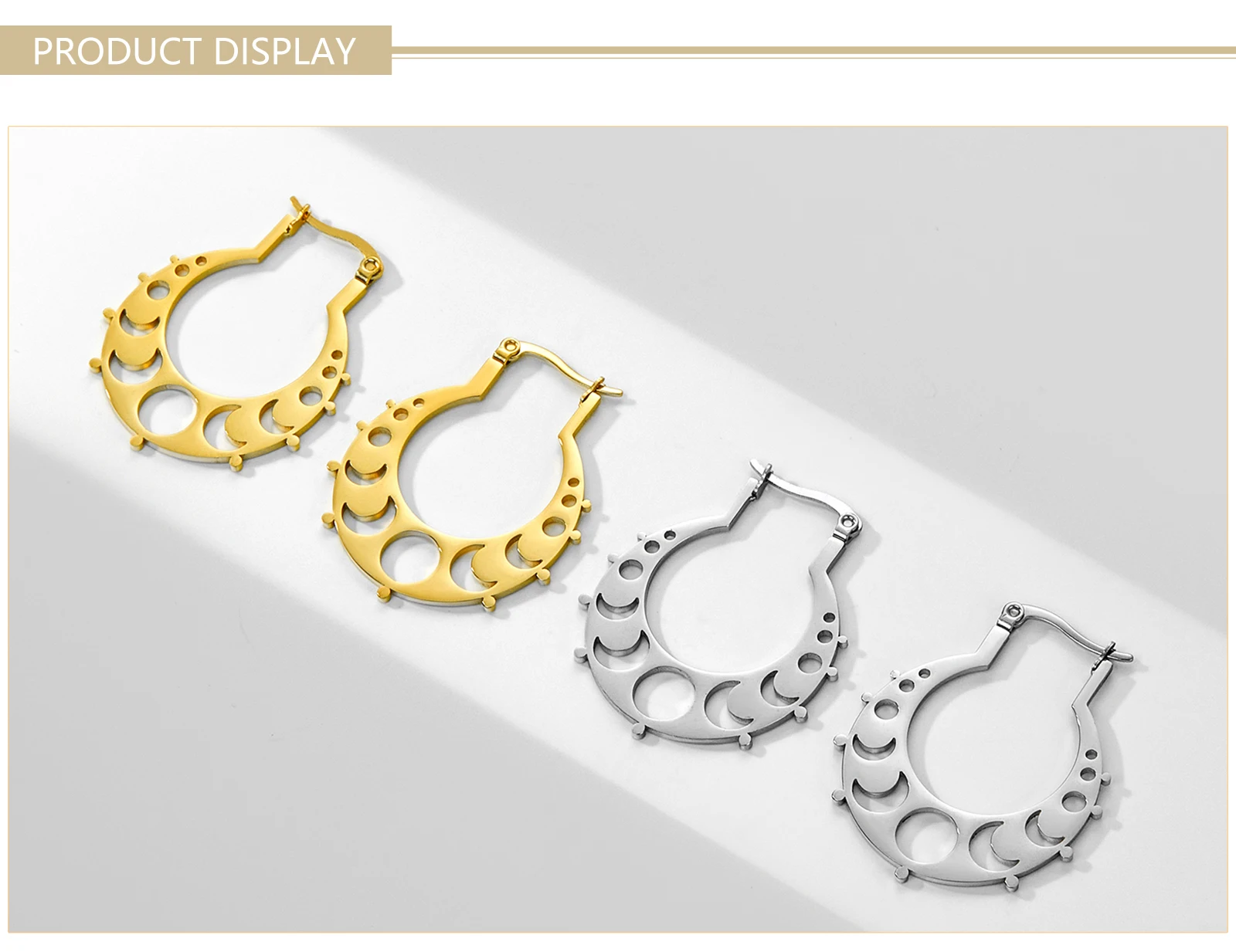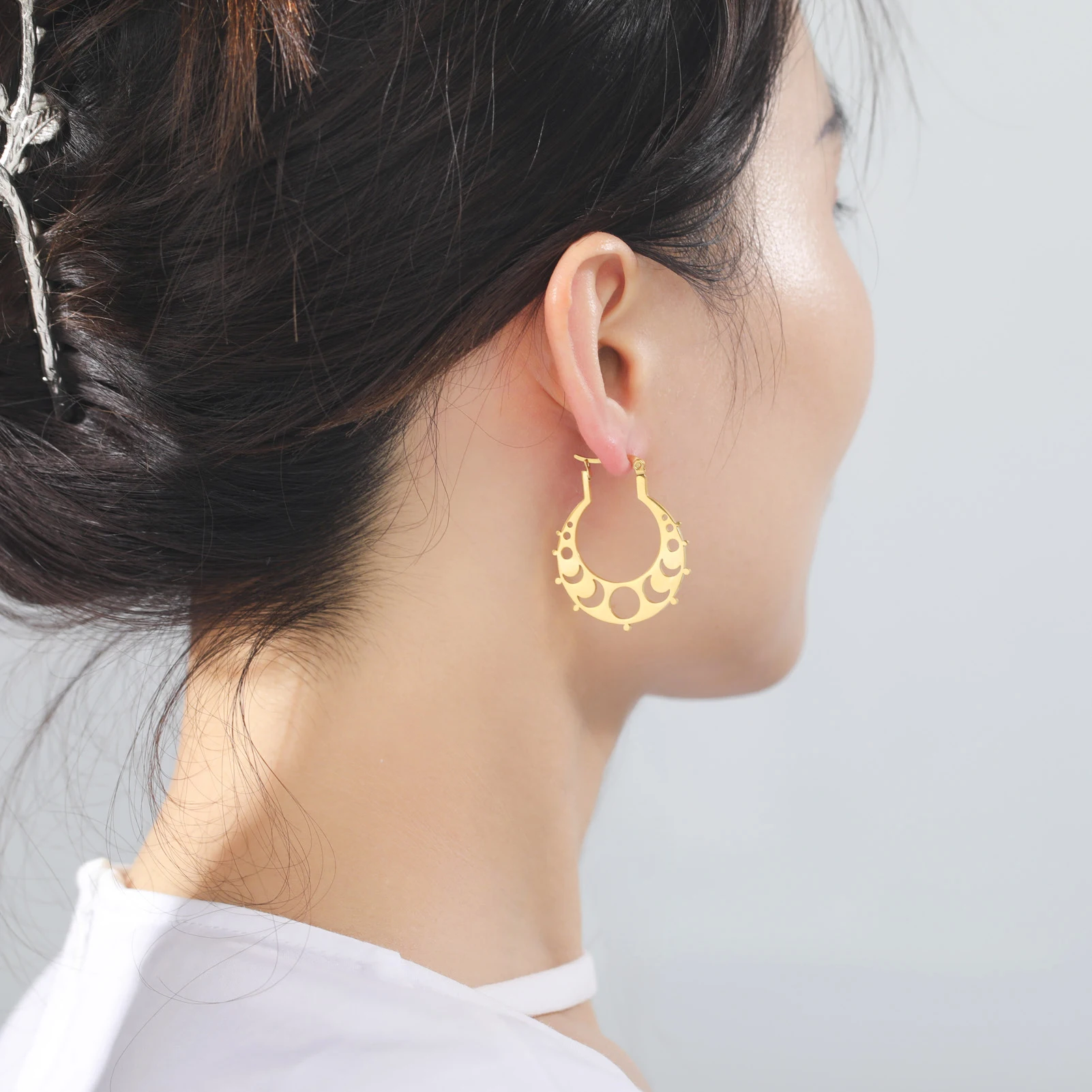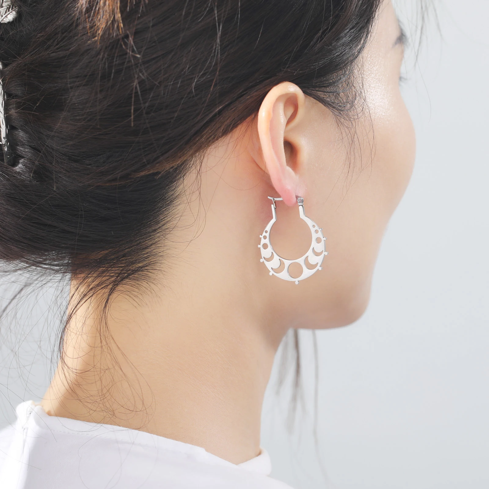 Pourquoi choisir -Boucles d'oreilles créoles en acier inoxydable Phase de la lune pour femme, boucle d'oreille croissant de lune, bijoux bohèmes, cadeau Leon, 2025