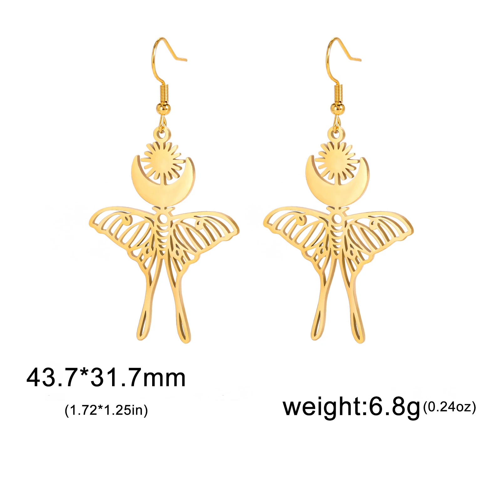 Pourquoi choisir – boucles d'oreilles lune soleil papillon pour femmes, en acier inoxydable, couleur or, bijoux de sorcellerie, cadeau d'anniversaire, nouveauté