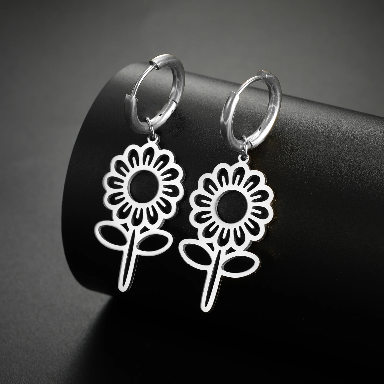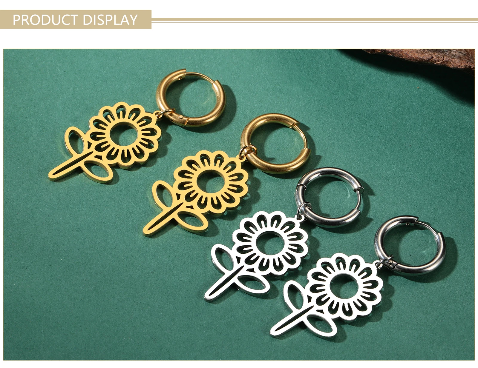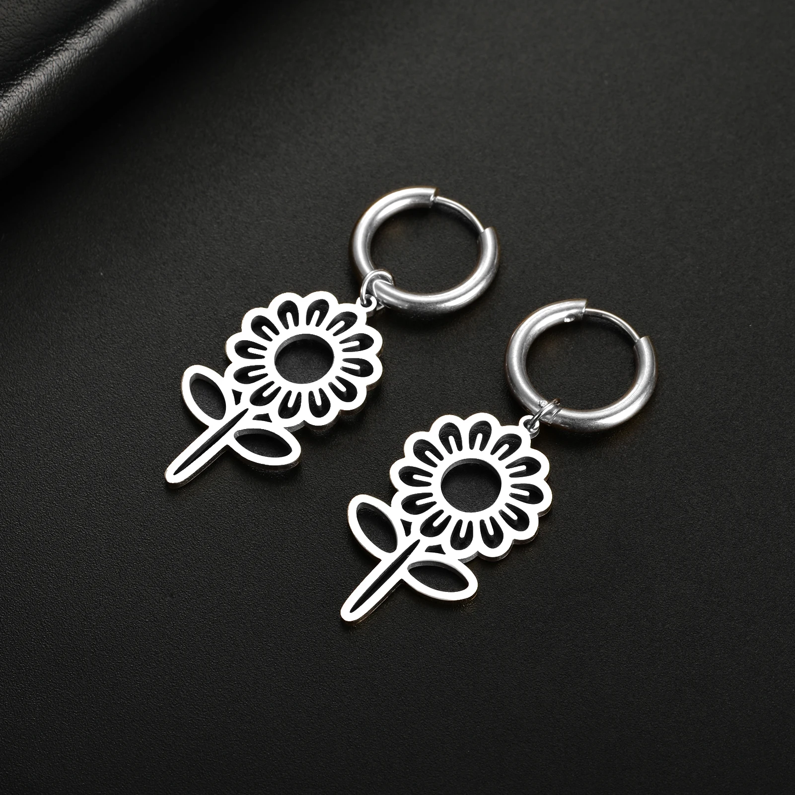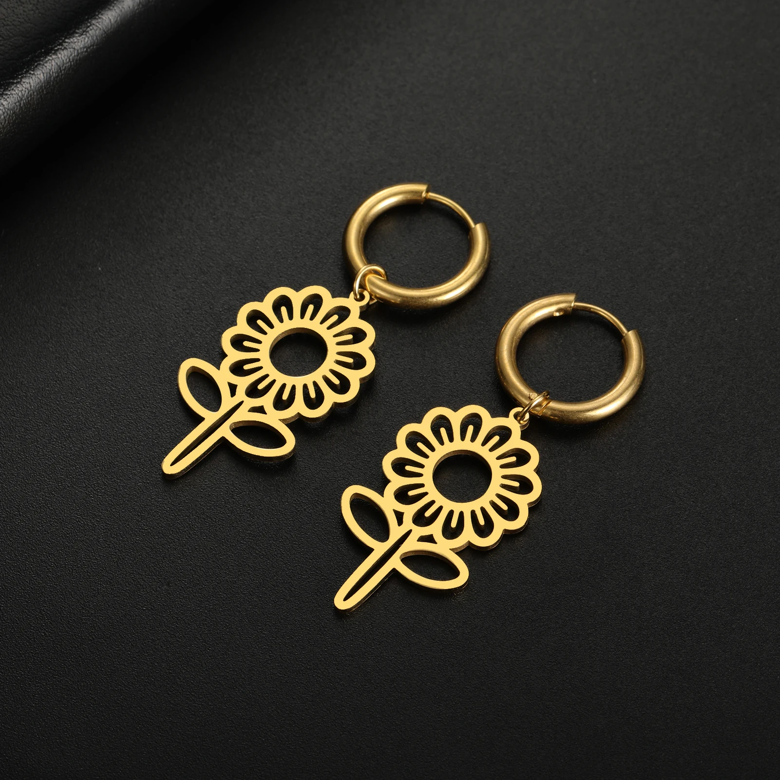Pourquoi choisir -Boucles d'oreilles pendantes de fleurs mignonnes pour femmes et filles, créoles en acier inoxydable, bijoux de document en or, cadeau d'anniversaire, vente en gros