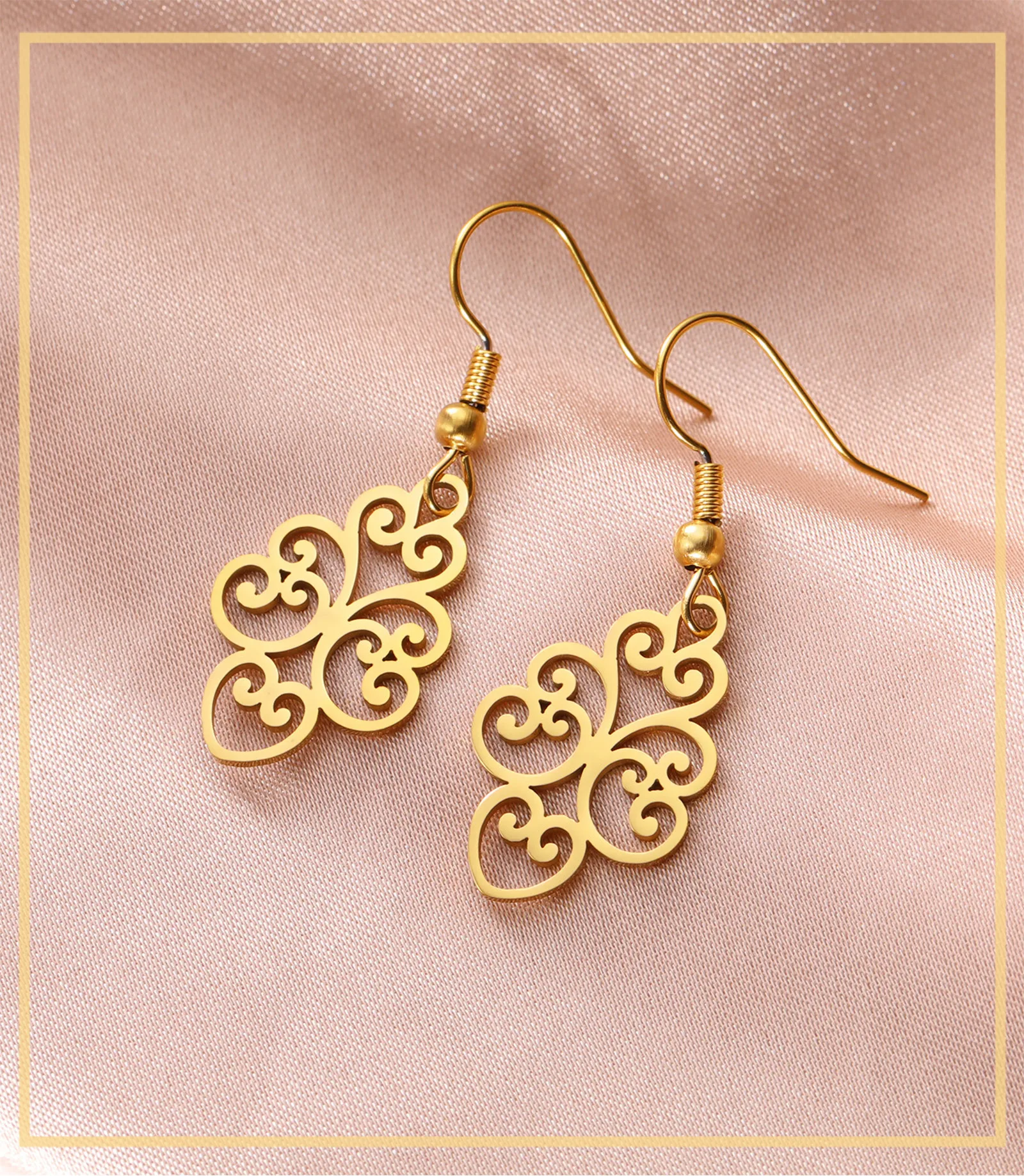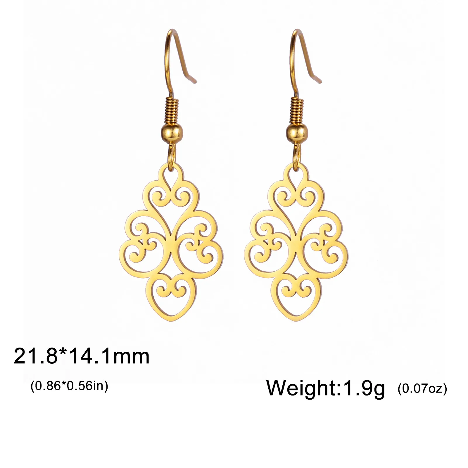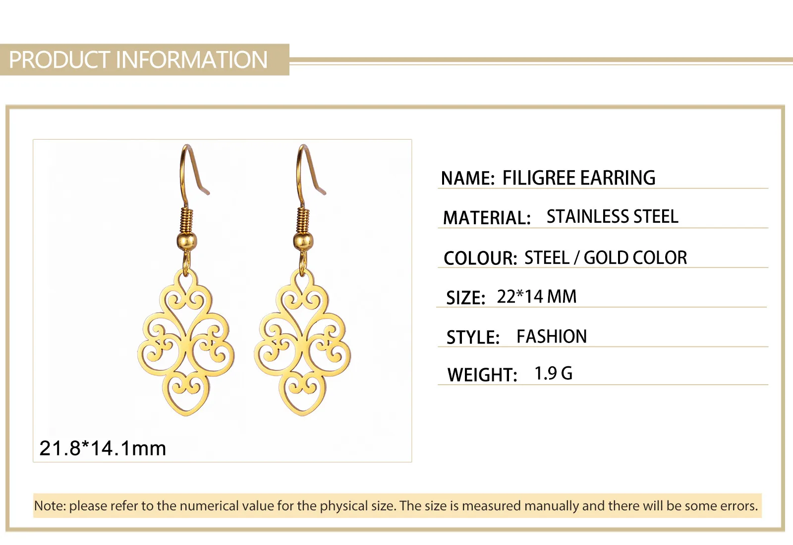 Pourquoi choisir -Boucles d'oreilles pendantes en filigrane Boucles d'oreilles en acier inoxydable couleur or Boucles d'oreilles vintage Bohème Cadeau de Noël Wholesale