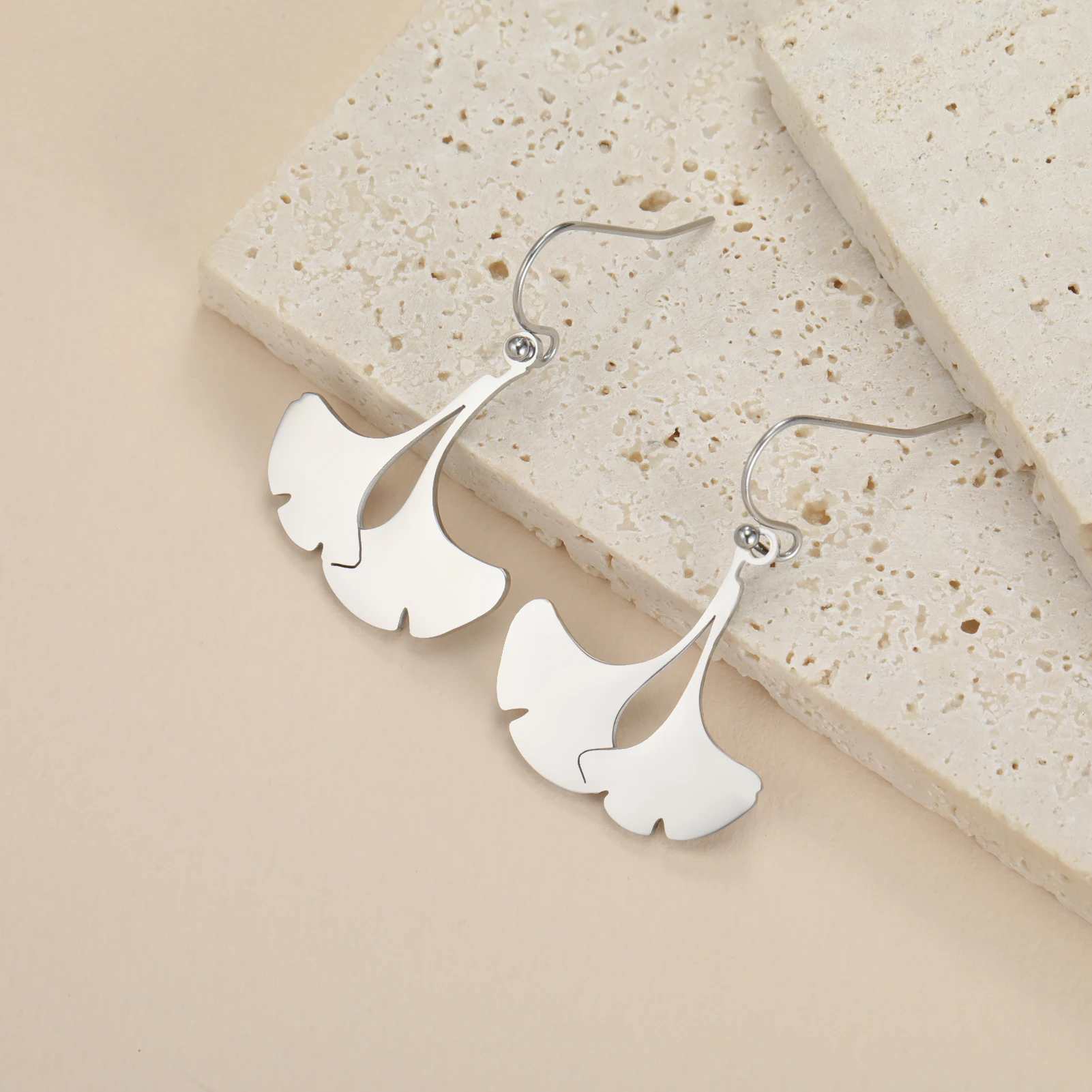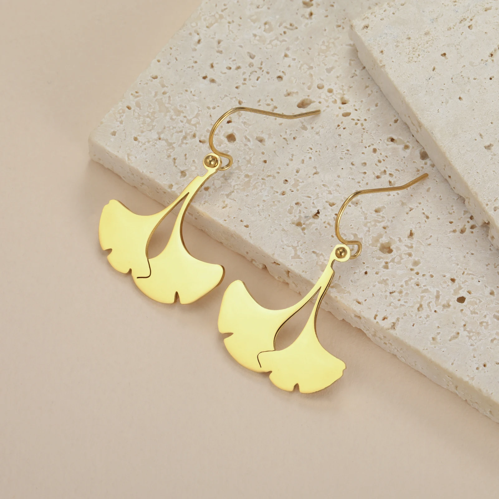 Pourquoi choisir – boucles d'oreilles pendantes en forme de feuille de Ginkgo pour femmes et filles, en acier inoxydable, bijoux végétaux bohème, cadeau de saint valentin