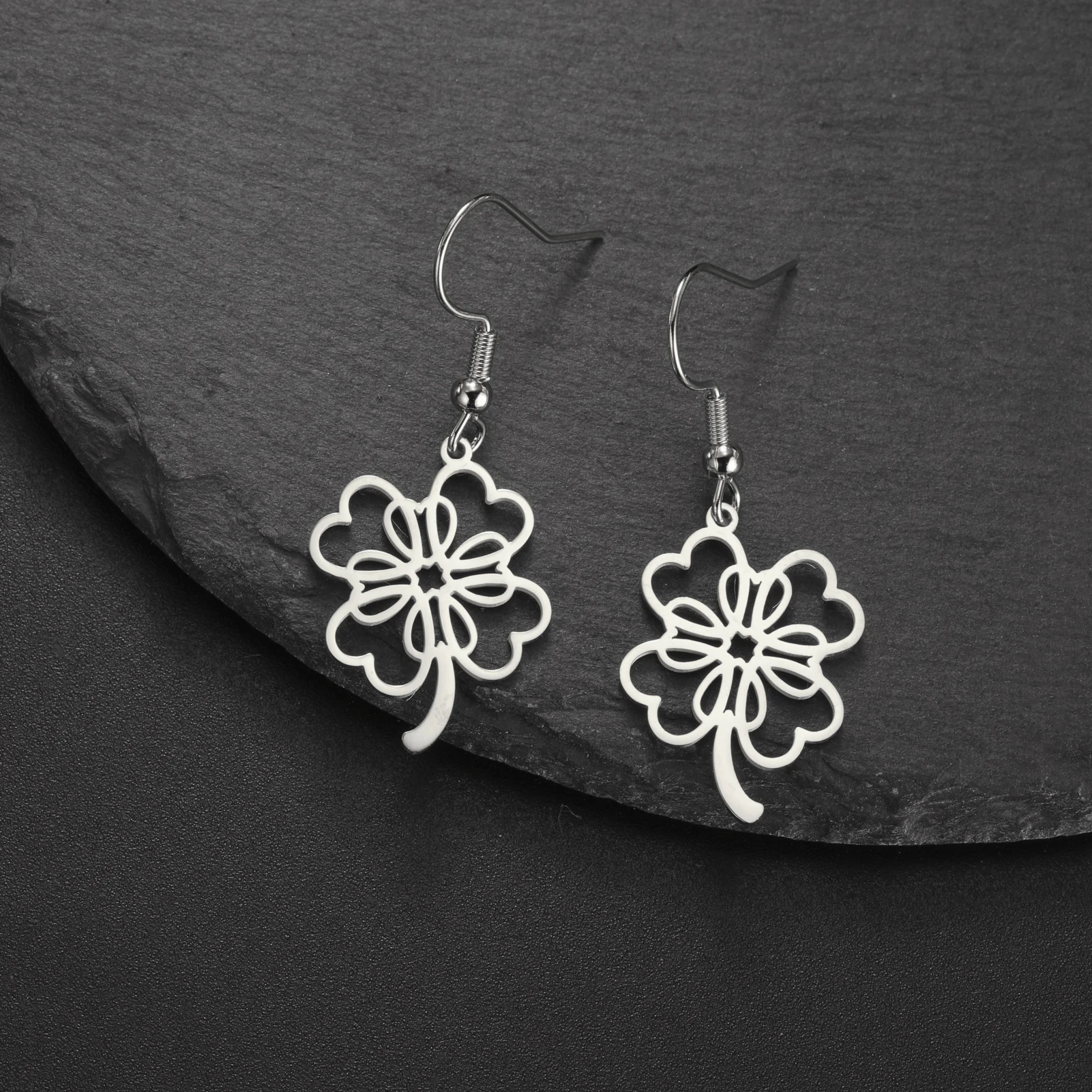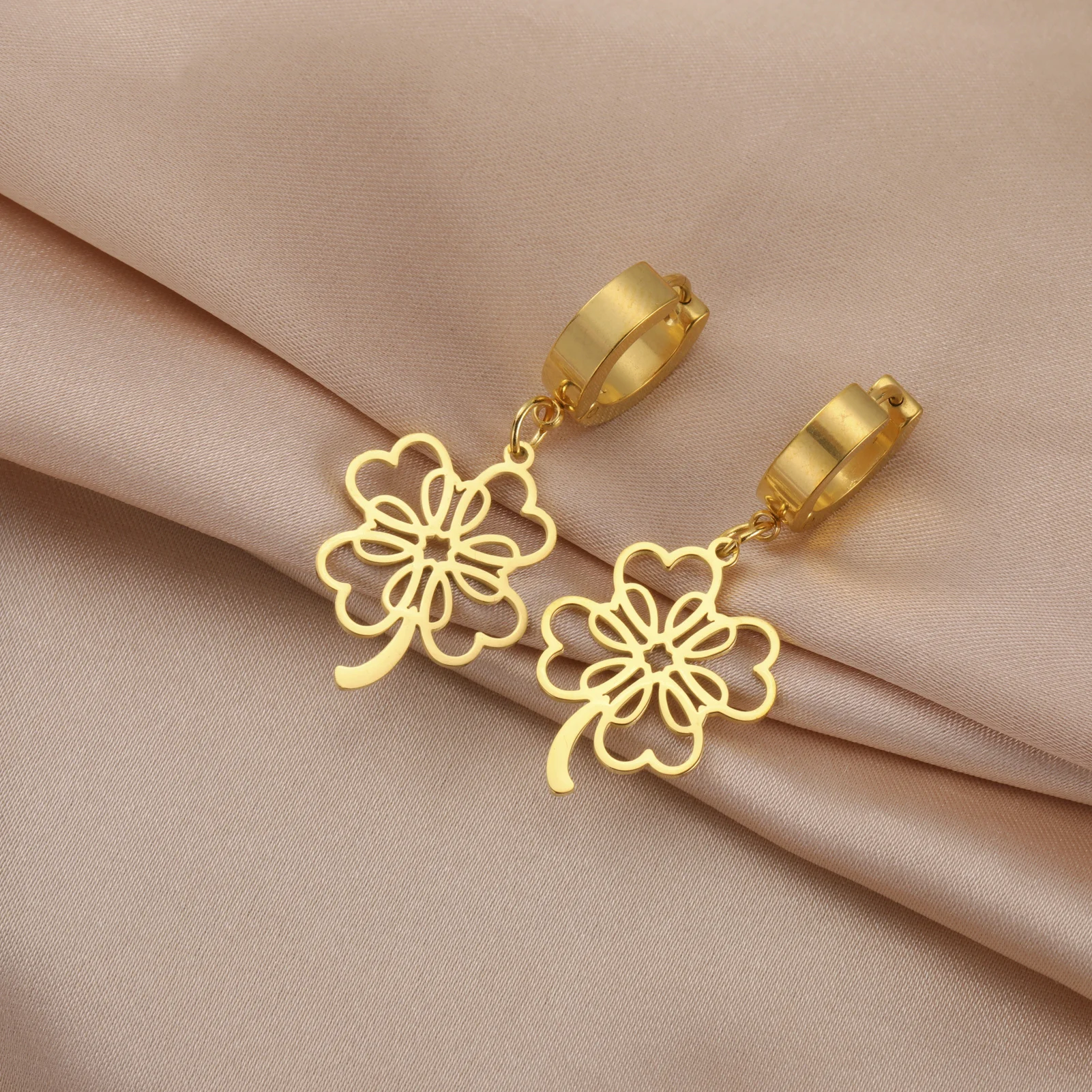 Pourquoi choisir -Boucles d'oreilles pendantes Everver à quatre feuilles pour femmes et filles, boucle d'oreille créole en acier inoxydable, bijoux fantaisie, cadeau d'anniversaire, porte-bonheur, nouveau