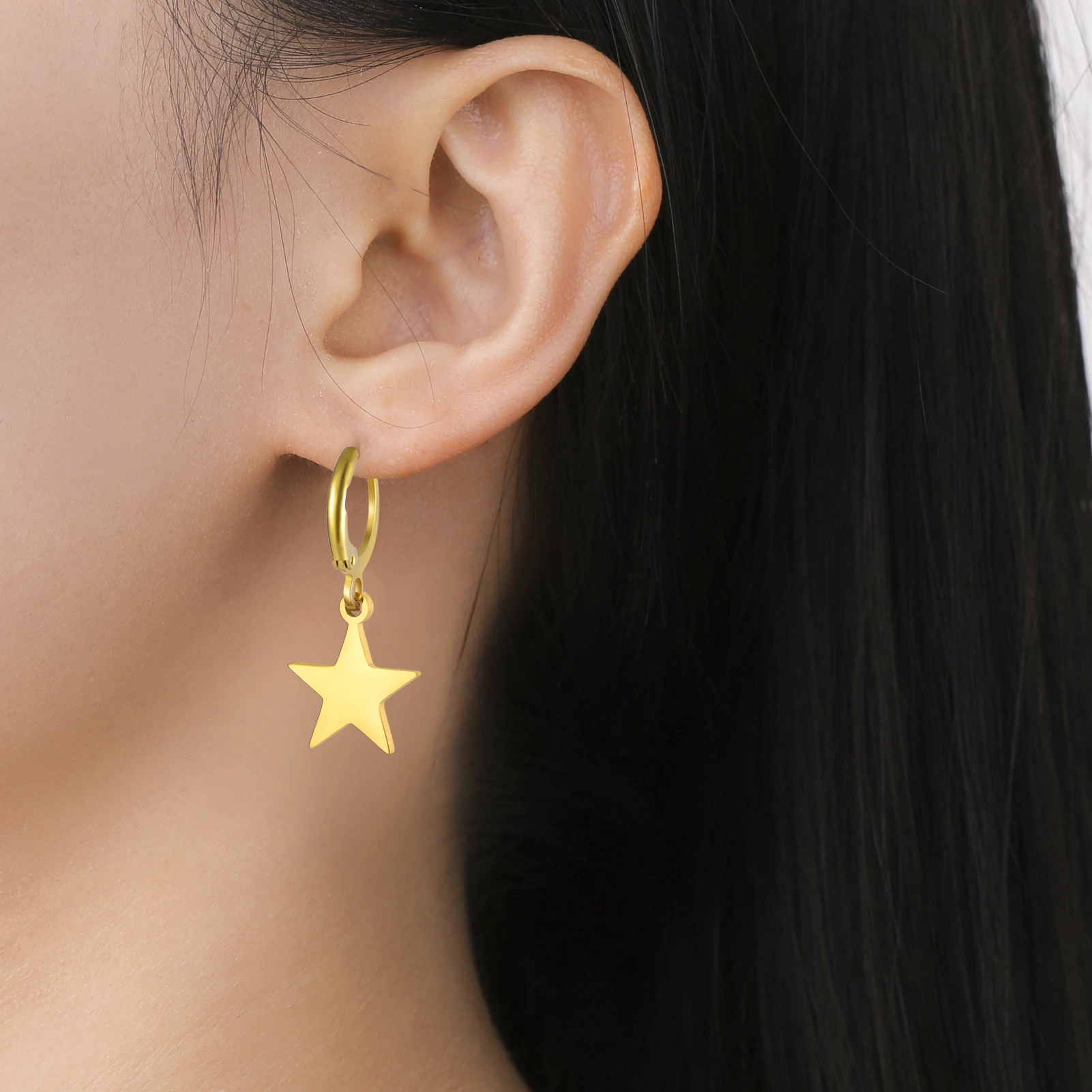 Pourquoi choisir – boucles d’oreilles pendantes lune étoile pour femmes et filles, couleur or, cerceau en acier inoxydable, Simple, bijoux à la mode, cadeau, vente en gros