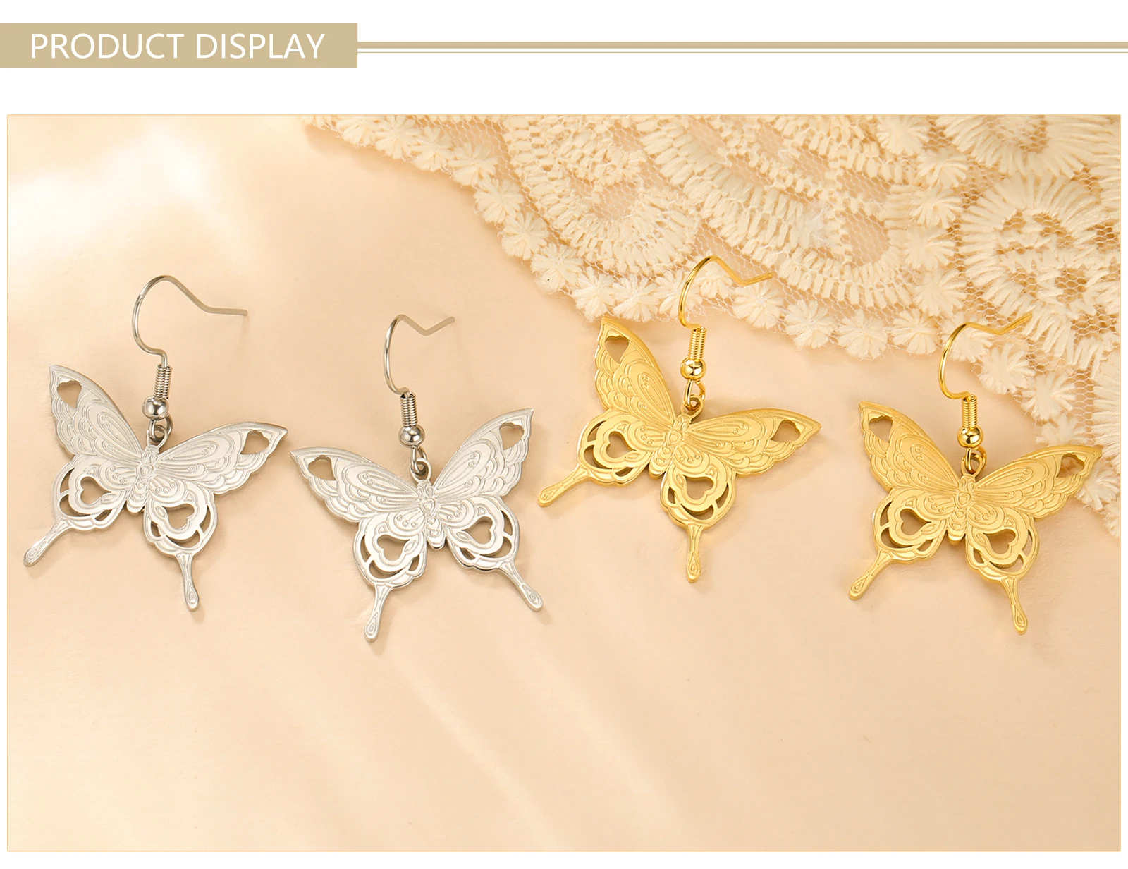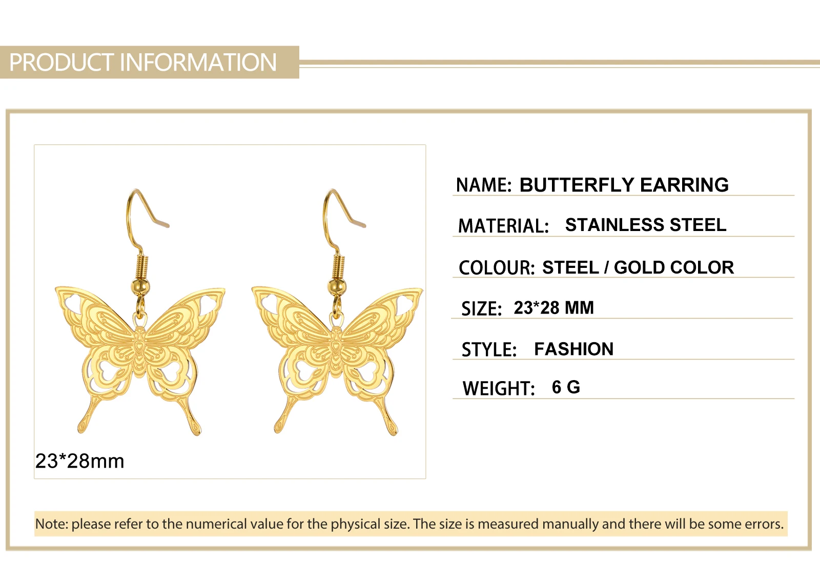 Pourquoi choisir Butterfly Women's Earrings Stainless Steel Gold Color Elegant Drop Earrings Animal Jewelry 2025 Trend Birthday Gift