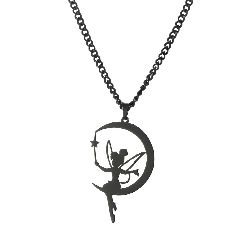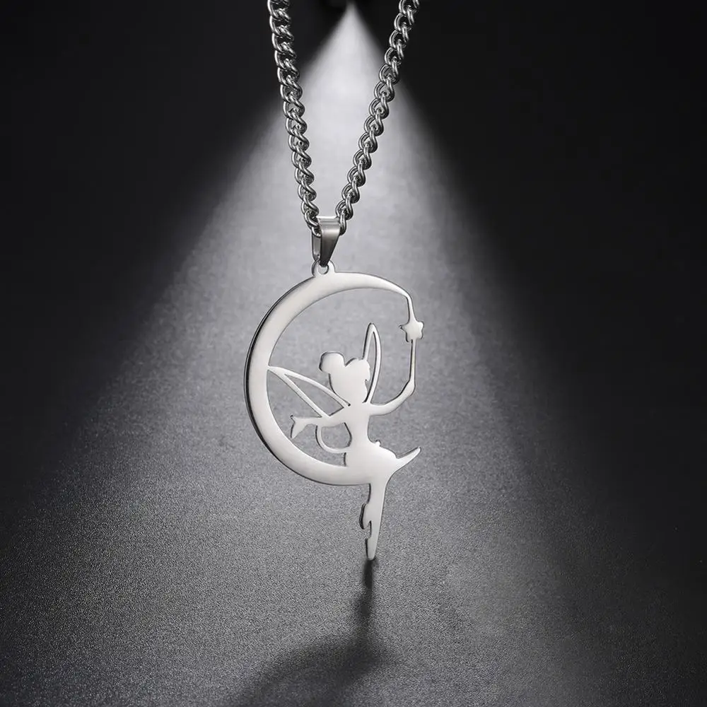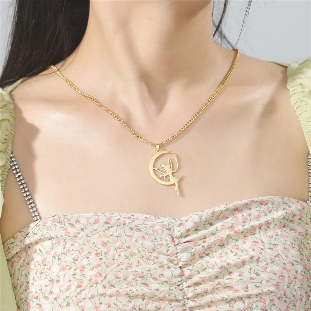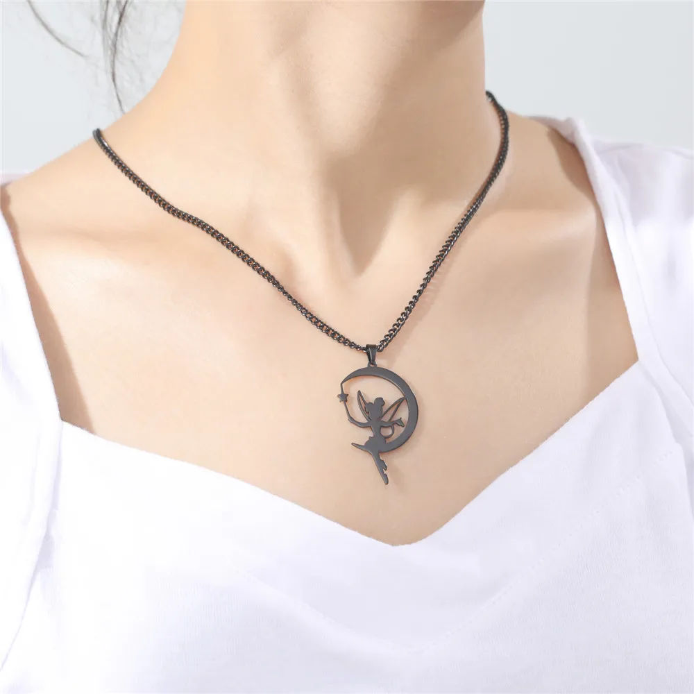 Pourquoi choisir -Collier pendentif elfe nickel é pour femmes et filles, ailes d'ange, lune, colliers de présidence, cou en acier inoxydable, bijoux de sorcière romantiques