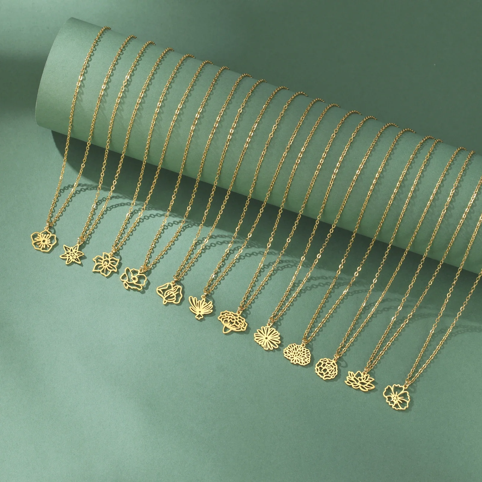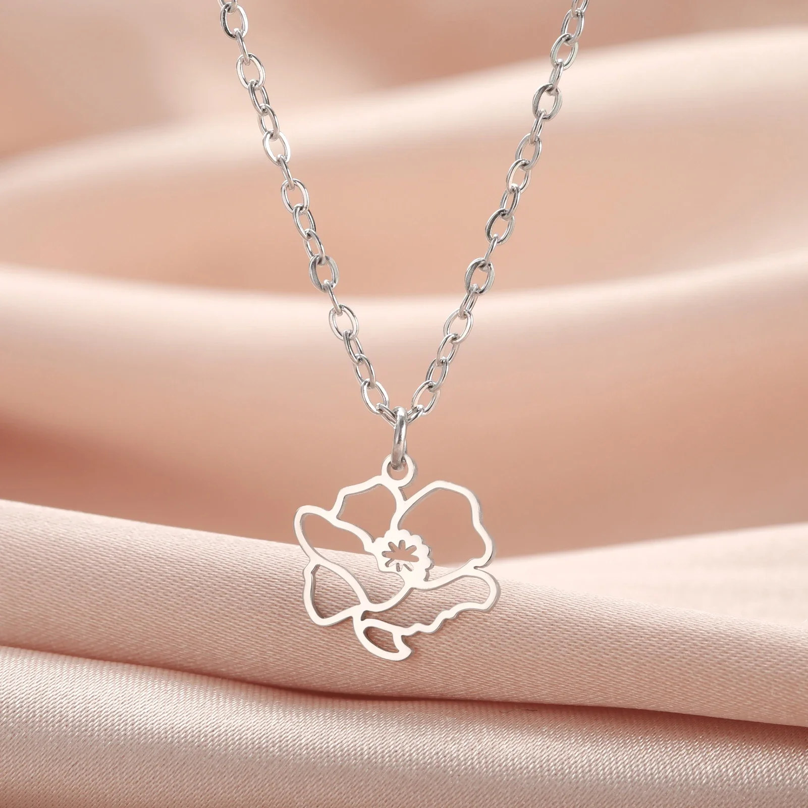 Pourquoi choisir -Collier pendentif fleurs pour femme, acier inoxydable, coquelicot, Aster, Annie jonquille, bijoux pour filles, mois de naissance, cadeau d'anniversaire