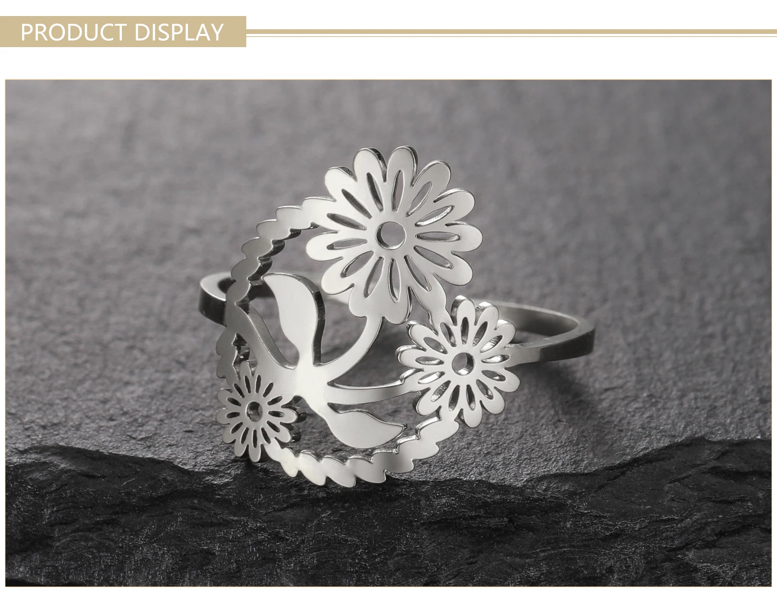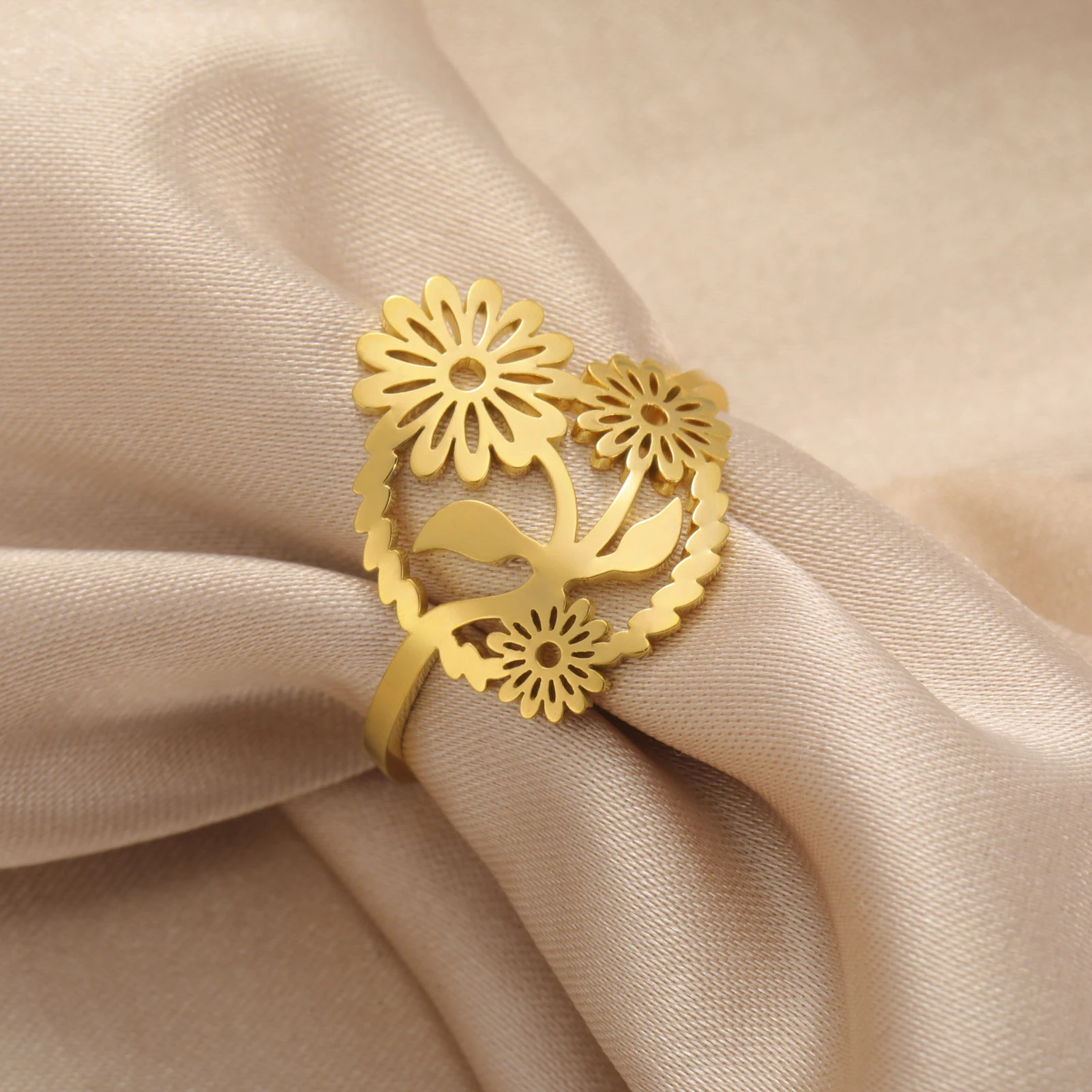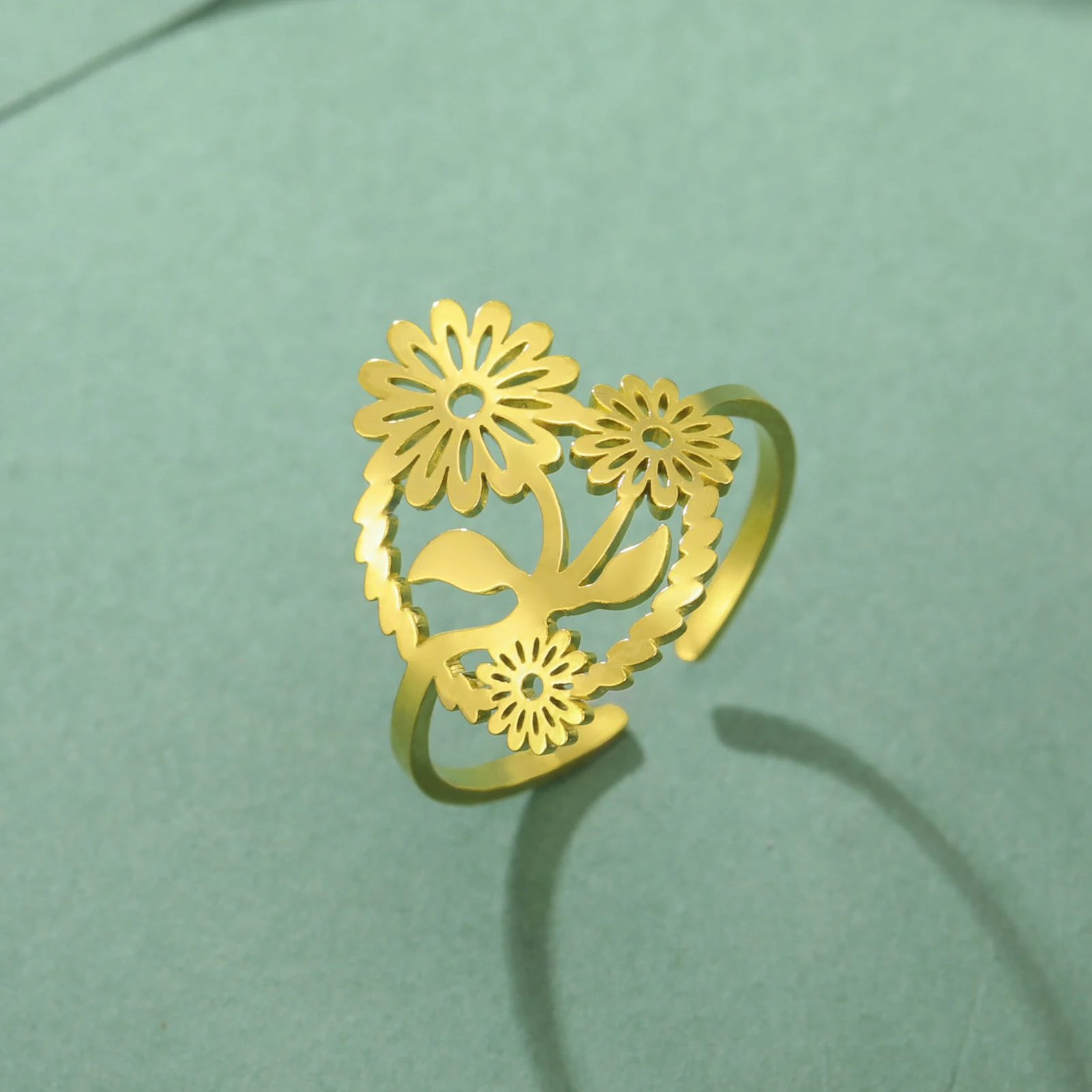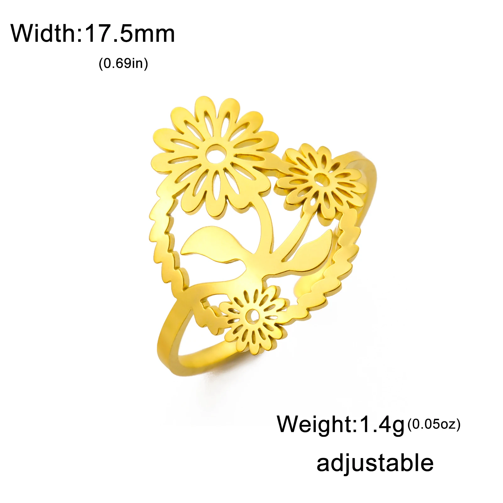 Pourquoi choisir Destroy AndrFlower-Bagues ouvertes réglables pour femmes, acier inoxydable, bague de document en or, bijoux chimbohèmes, cadeau d'anniversaire, vente en gros