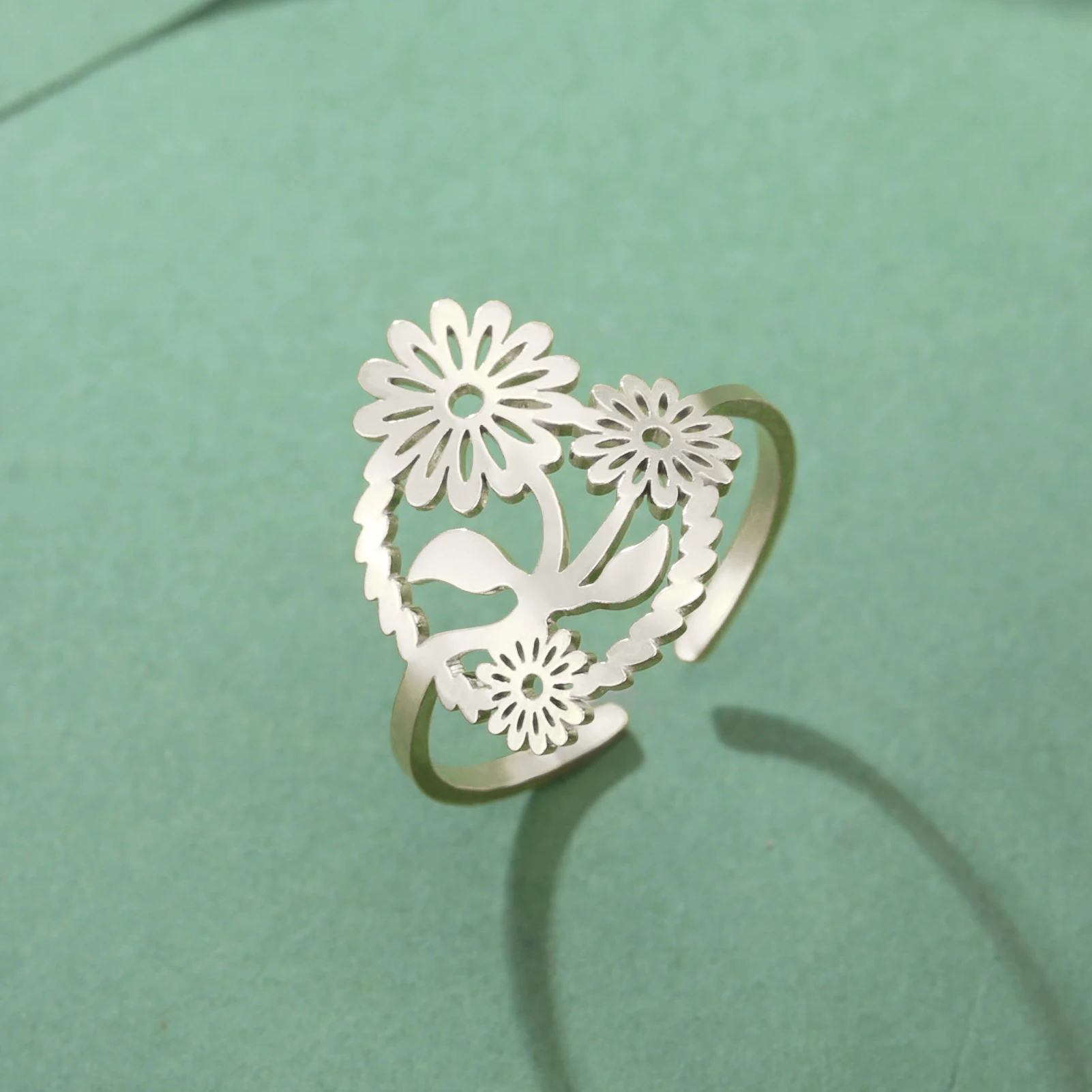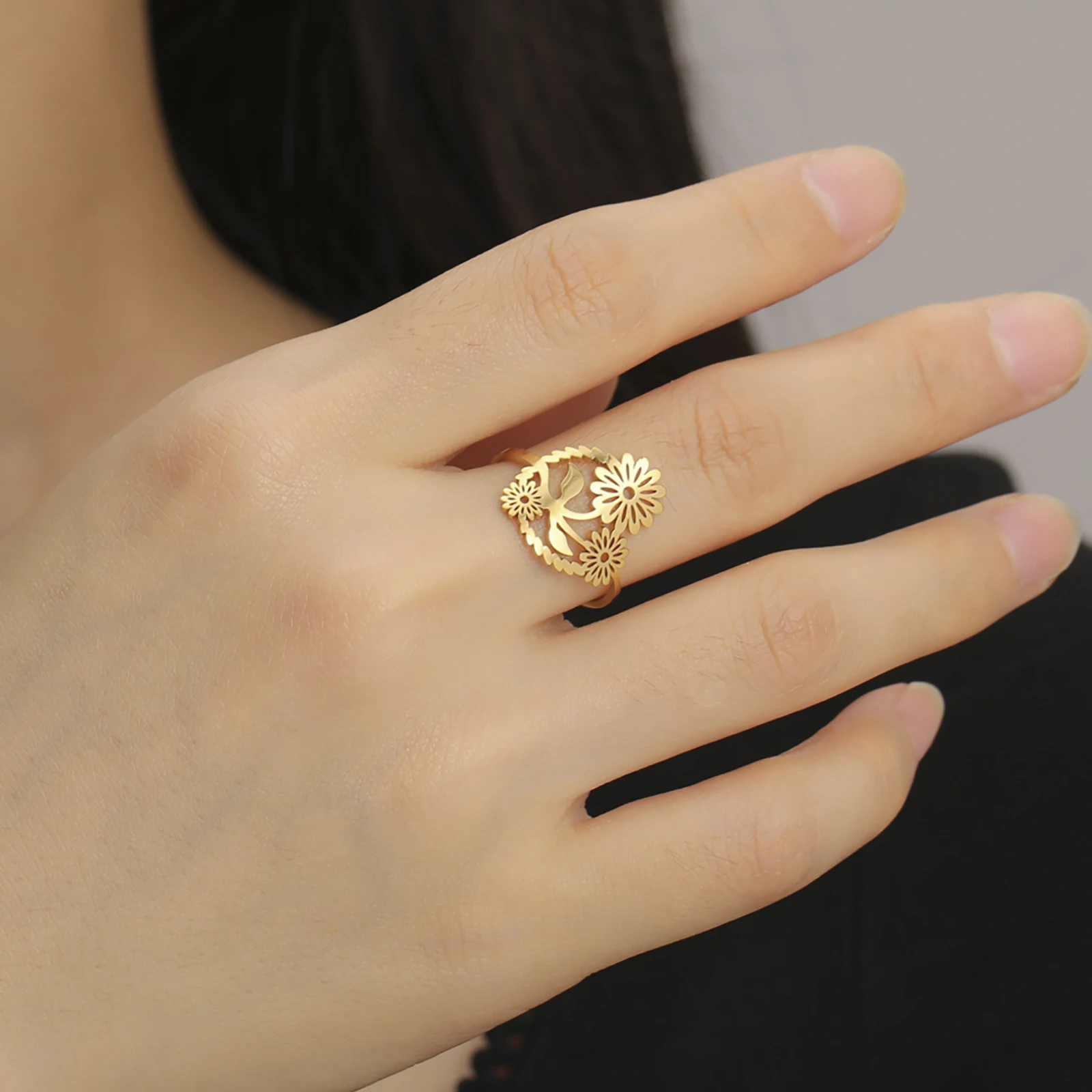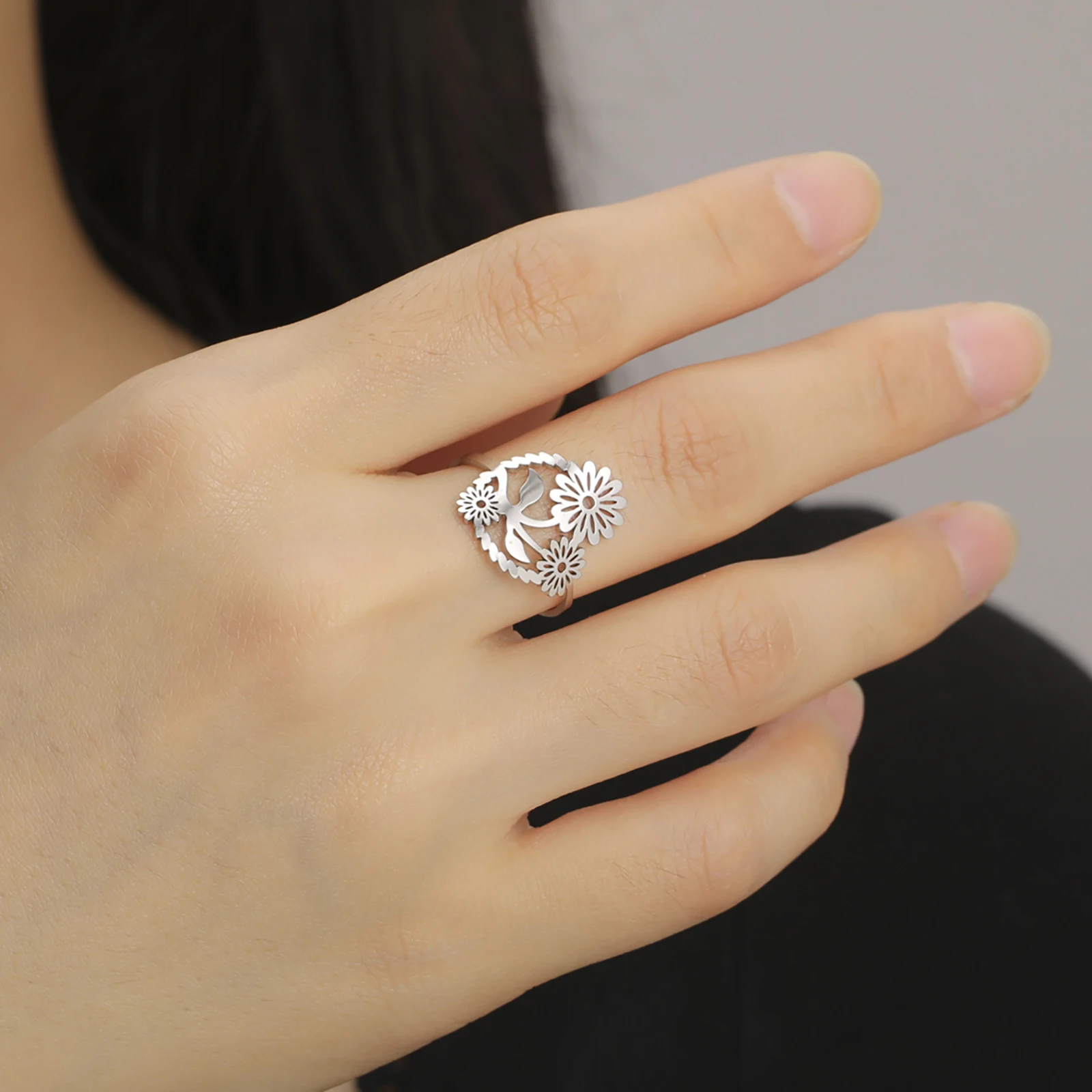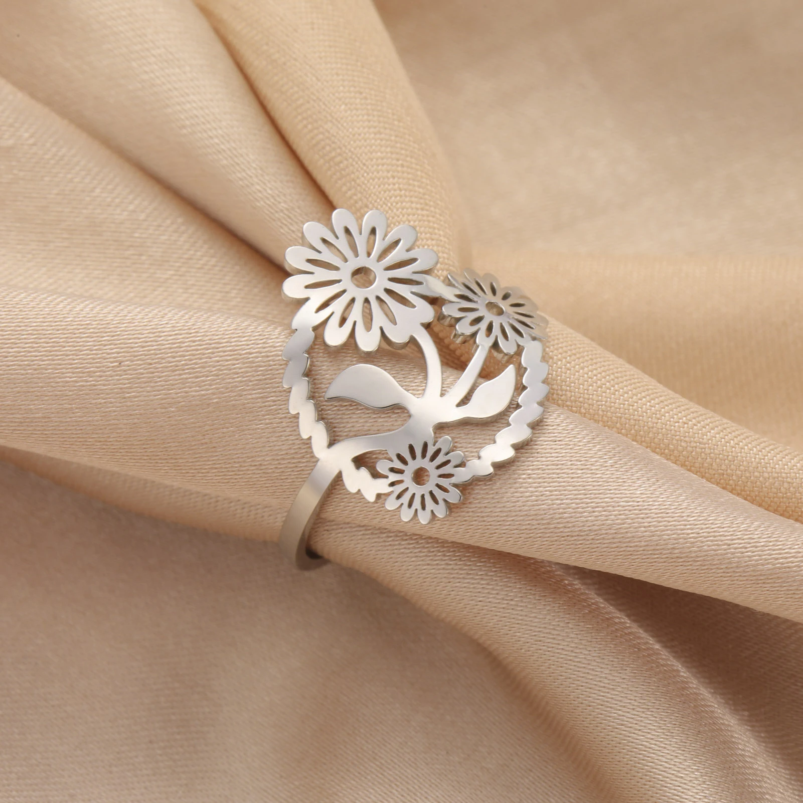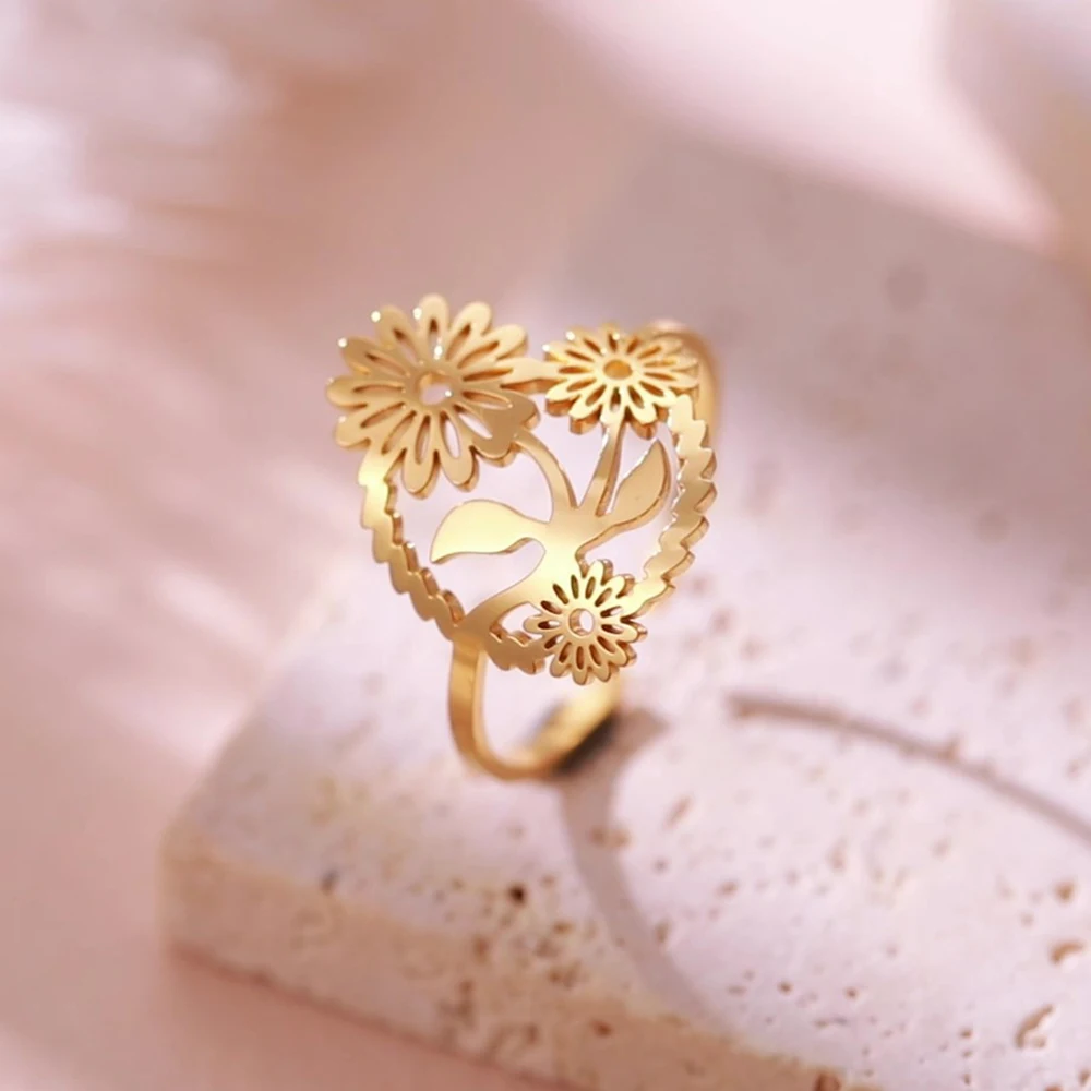 Pourquoi choisir Destroy AndrFlower-Bagues ouvertes réglables pour femmes, acier inoxydable, bague de document en or, bijoux chimbohèmes, cadeau d'anniversaire, vente en gros