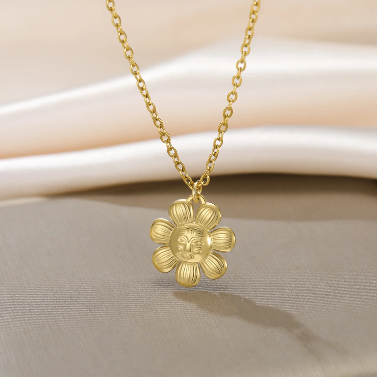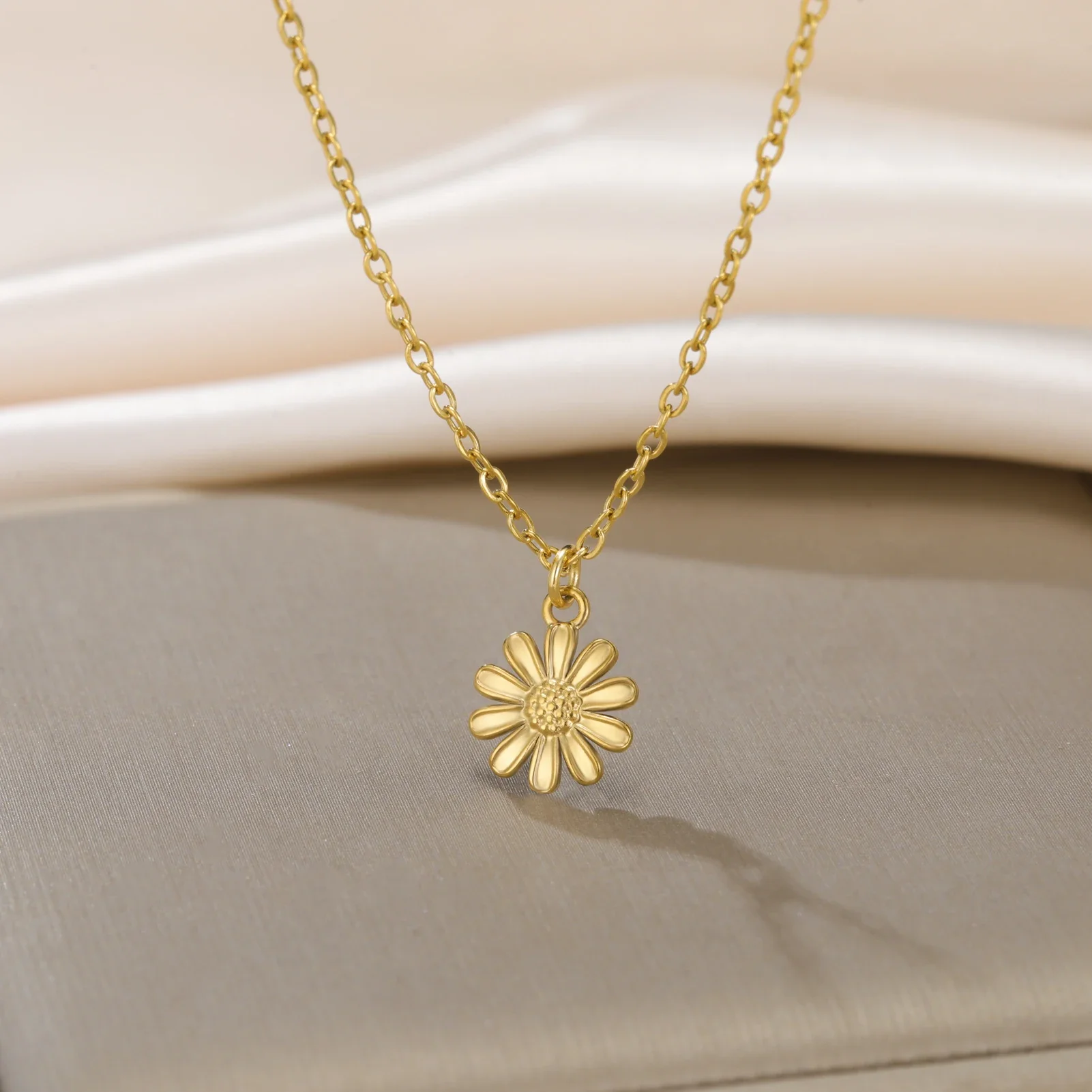 Pourquoi choisir Flower Pendant Necklace for Women Girls Stainless Steel Gold Color Neck Chains Daisy Sunflower Jewelry Gift Wholesale