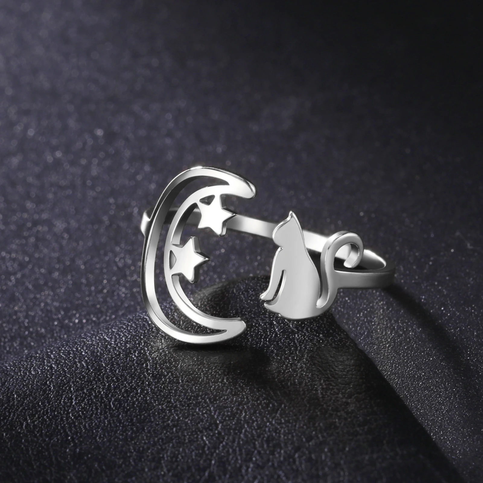 Pourquoi choisir nouveau dans les femmes croissant de lune étoile chat anneau en acier inoxydable mode mignon Animal ouvert bagues bijoux cadeau en gros