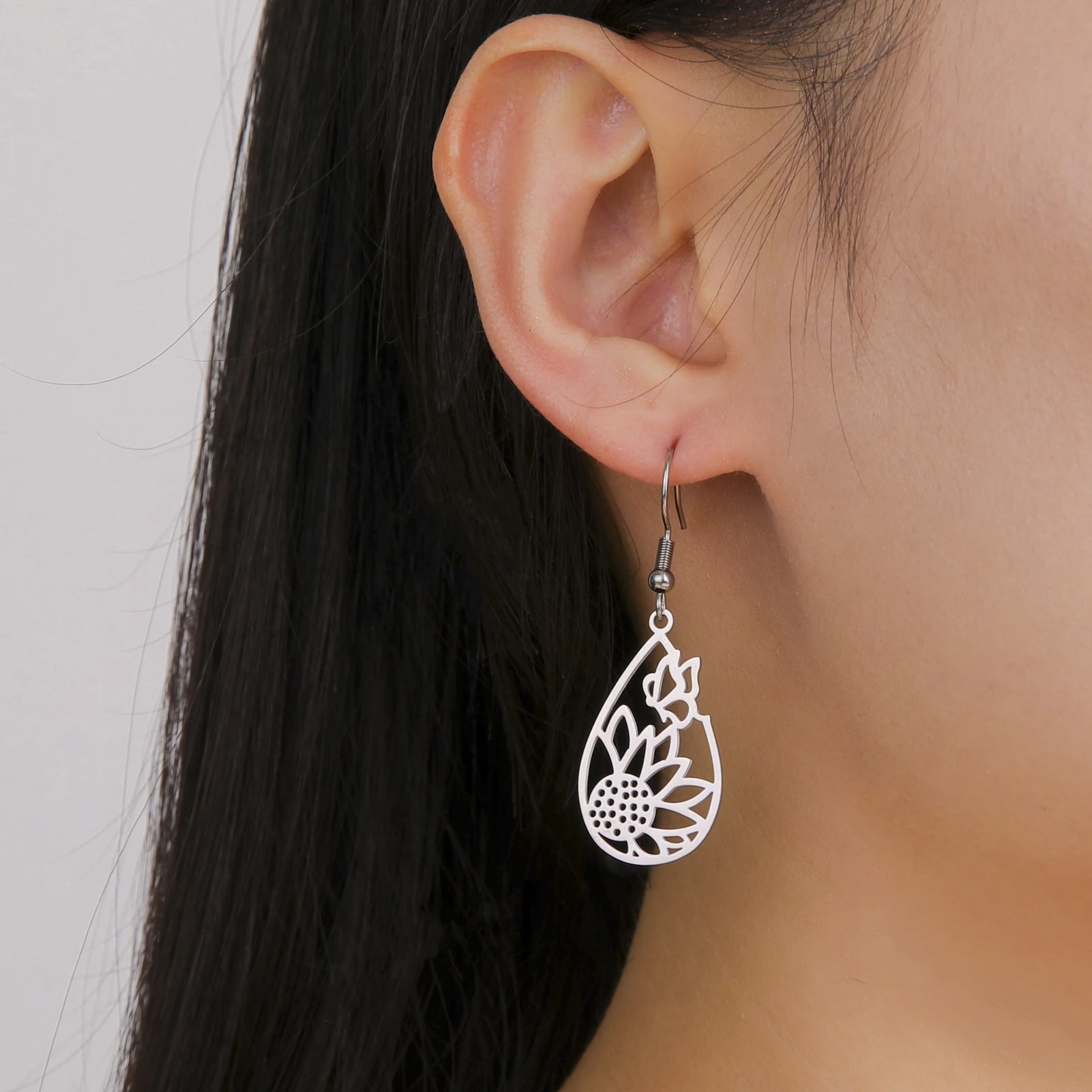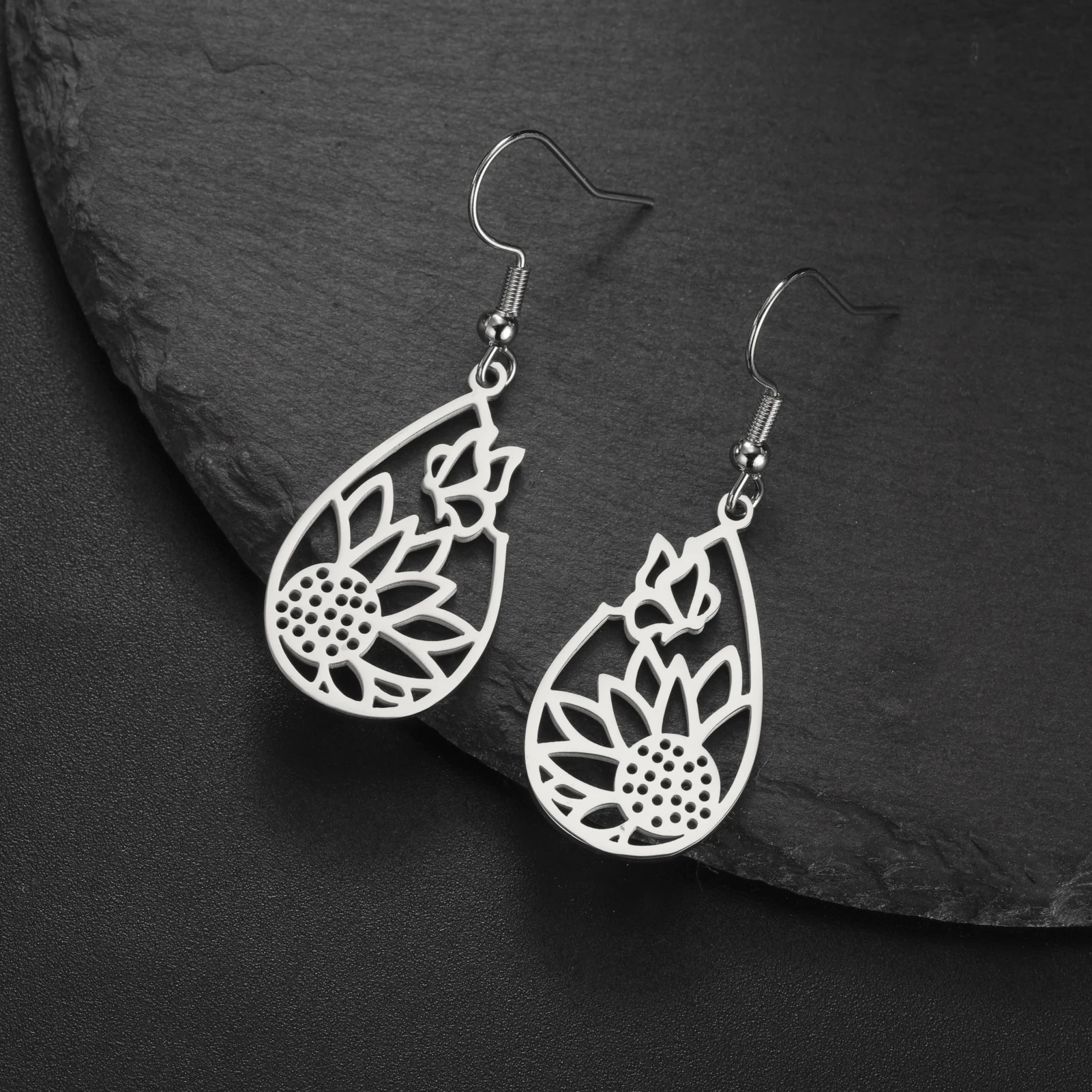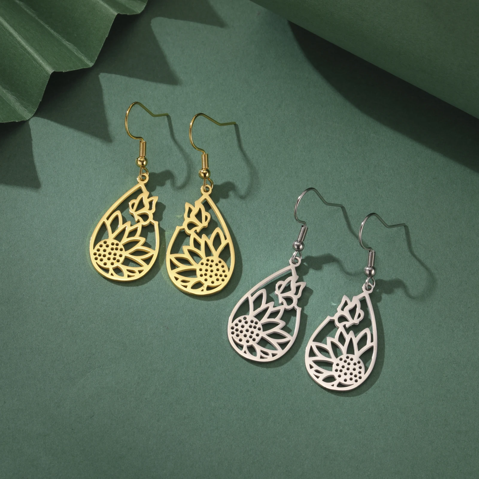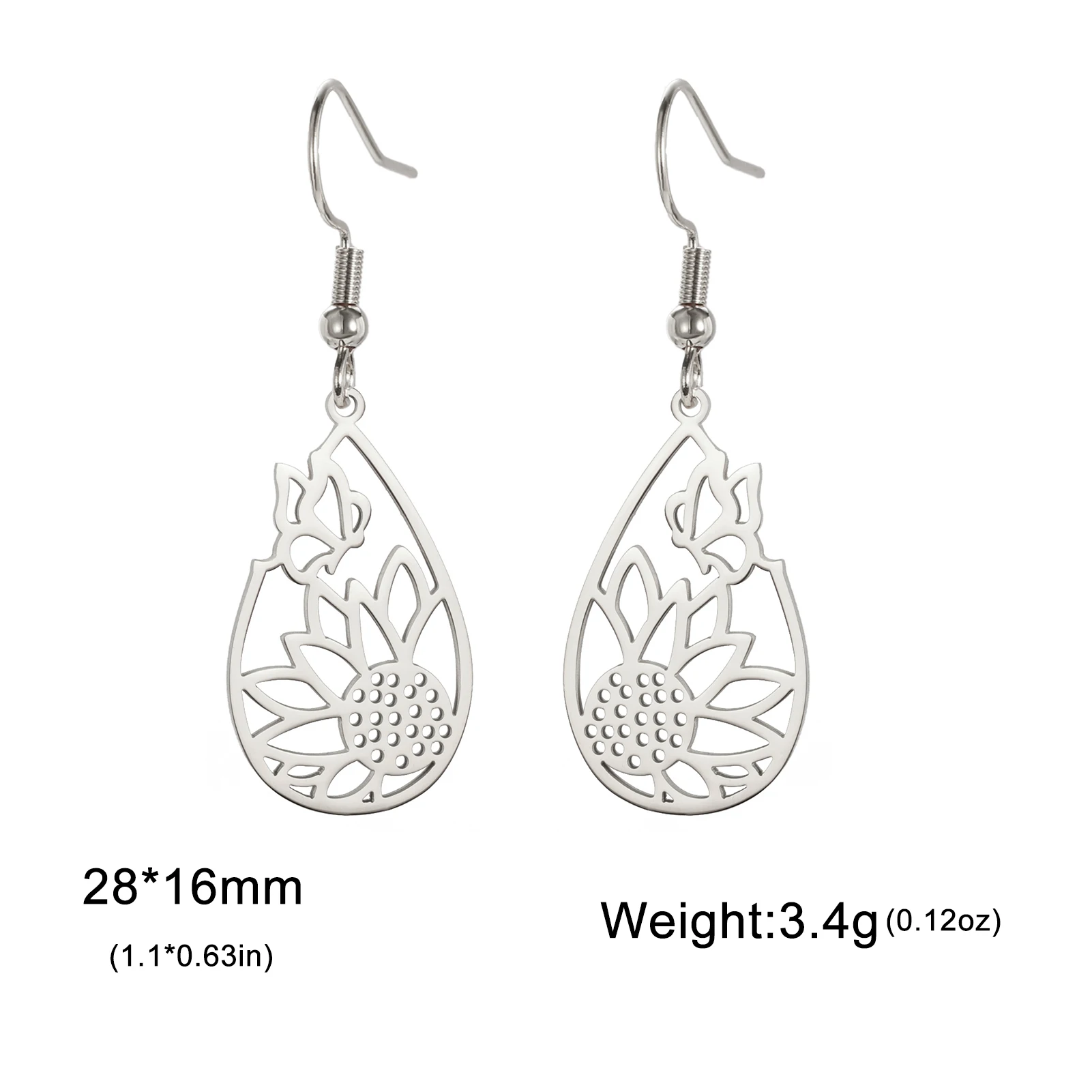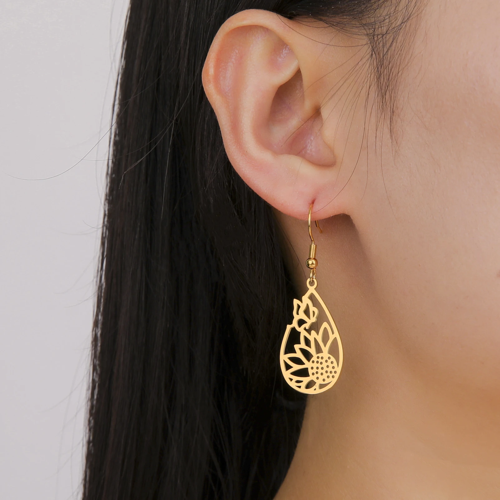 Pourquoi choisir tournesol papillon larme pendentif boucle d'oreille femmes filles en acier inoxydable couleur or boucles d'oreilles bijoux cadeau de saint valentin